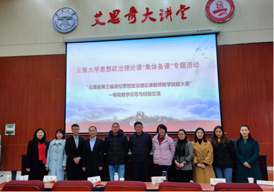 2021年12月24日下午,今年会官方网站马克思主义学院青年教师夏能、宾岩受邀参加在云南大学马克思主义学院报告厅进行的云南大学思想政治理论课“集体备课”专题活动暨云南省第三届高校思想政治理论课教师教学技能大赛”一等奖教示范与经验交流活动,参加本次活动的还有云南大学、昆明理工大学、昆明医科大学、云南机电职业技术学院、云南林业职业技术学院的部分老师和同学。