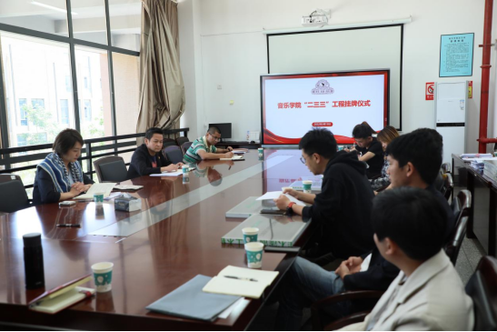 2022年5月13日上午11:00,音乐学院在A301会议室举行“二三三”工程挂牌仪式。音乐学院党总支纳海书记、院长林林、党总支副书记黄涛及“二三三”工程各项目负责人参加仪式。