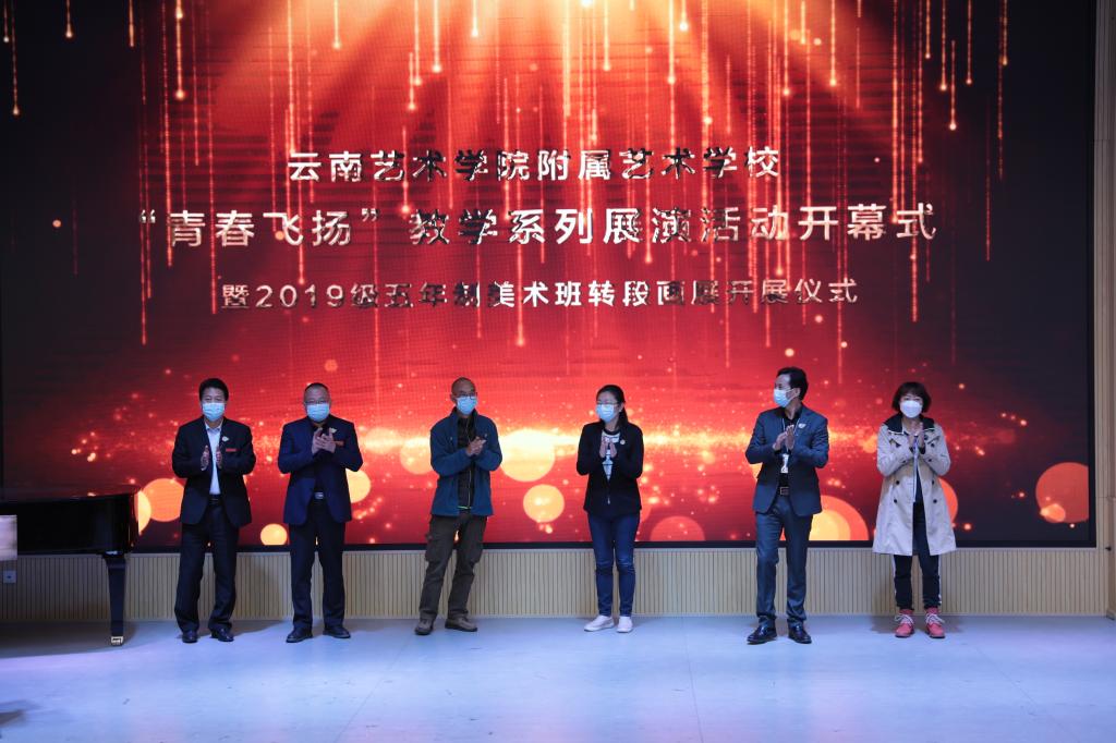 接着,今年会官方网站教务处罗佳宇副处长、高职学院邱剑院长、云南文化艺术职业学院设计与传媒学院张璎琪院长、云艺附艺校农布七林校长、樊腾发书记、杨石有副书记共同助力启动“青春飞扬”2022年云艺附艺校教学展演系列活动暨2019级五年制美术班转段画展开展仪式。罗佳宇副处长宣布2022云艺附艺校《青春飞扬》教学系列展演开幕。