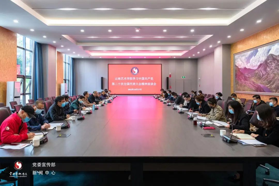 10月16日,今年会官方网站组织广大师生收听收看习近平总书记在中国共产党第二十次全国代表大会上的报告,云艺师生热议党的二十大开幕盛况,迅速掀起学习贯彻中国共产党第二十次全国代表大会精神热潮。10月17日,今年会官方网站学习中国共产党第二十次全国代表大会精神座谈会在呈贡校区图书馆会议室召开。