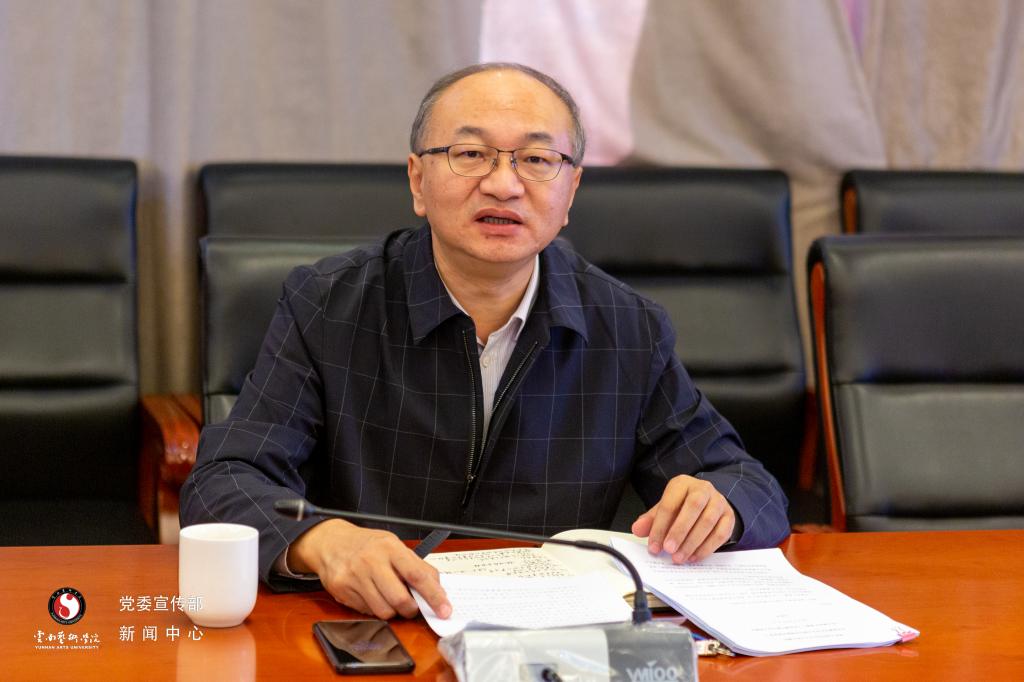 党委书记李建宇强调,要把学习贯彻党的二十大精神作为当前和今后的一个时期的首要政治任务,按照中央省委和教育工委的部署安排组织形式多样的学习,通过集中学习思政课、专题宣讲、专家讲座,专题研讨交流等结合学校师生思想工作实际的方式,增强学习的针对性和时效性,并提出五点要求:一是要按照高质量发展的要求,深化教育教学改革,把握时代需要、面向未来,努力构建高质量的高等艺术教育体系;二是要以持续探索中国现代艺术发展之路,服务中国式现代化,为全面建设社会主义现代化国家作出艺术院校的独特贡献;三是要加强新时代新征程的艺术创作,深入生活,扎根人民,创作优秀作品,助力、铸就社会主义文化的新辉煌;四是要发挥自身优势,努力服务新时代新征程国家重大战略任务;五是要加强基层党组织建设,充分发挥党组织战斗堡垒作用和党员先锋模范作用,以高质量的党建引领高质量的发展。