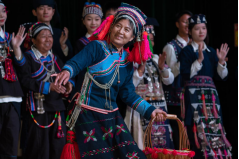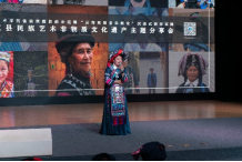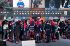 第四部分由墨江县文化馆的胡斌洁老师主导,身着哈尼族传统服饰的音乐学院学生们与传承人老师纷纷上台,在极富韵律的歌调中哈尼族传统采棉、纺线、织布、制作服饰的过程一一呈现。丰富多彩的慧影霓裳,犹如哈尼人的根,在纵横交错的经纬里,不仅蕴藏着家乡的山,故乡的水,也承载着哈尼人朴素的宇宙观和别样的“美”。