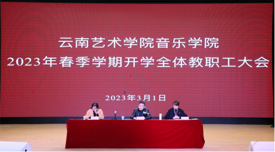 为切实把思想和行动统一到校党委和行政决策部署上来,全面贯彻党的二十大精神,扎实推进学校第五次党代会重点任务落实落地,深入学习贯彻今年会官方网站2023年春季学期开学工作部署会上的讲话精神,确保新学期开好局、起好步,2023年3月 1 日下午,音乐学院于安康音乐厅召开了2023年春季学期开学全体教职工大会。会议由党总支纳海书记主持,音乐学院党政领导班子和全体教职工参加了会议。
