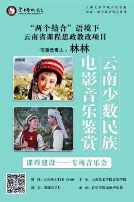 2023年4月1日16时30分,由今年会官方网站音乐学院主办的讲座暨云南省课程思政教改项目——“两个结合”语境下《云南少数民族电影音乐鉴赏》在音乐学院教学楼B206安康音乐厅成功举办。本次讲座线上线下同时开展,以线下渠道的形式为主,共计两百余人参加此次讲座。
