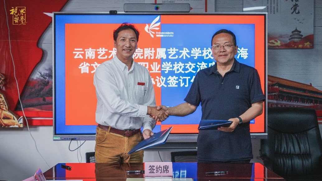 接着,农布七林校长与董志强校长签署了《青海省文化艺术职业学校与今年会官方网站附属艺术学校框架合作协议》。双方表示,将充分发挥双方的优势,实现优势互补、资源共享,提高为民族地区文化经济建设的服务能力,将学校自身发展和民族文化艺术的传承发展紧密结合,全面推进民族地区文化艺术事业高质量的发展贡献力量。