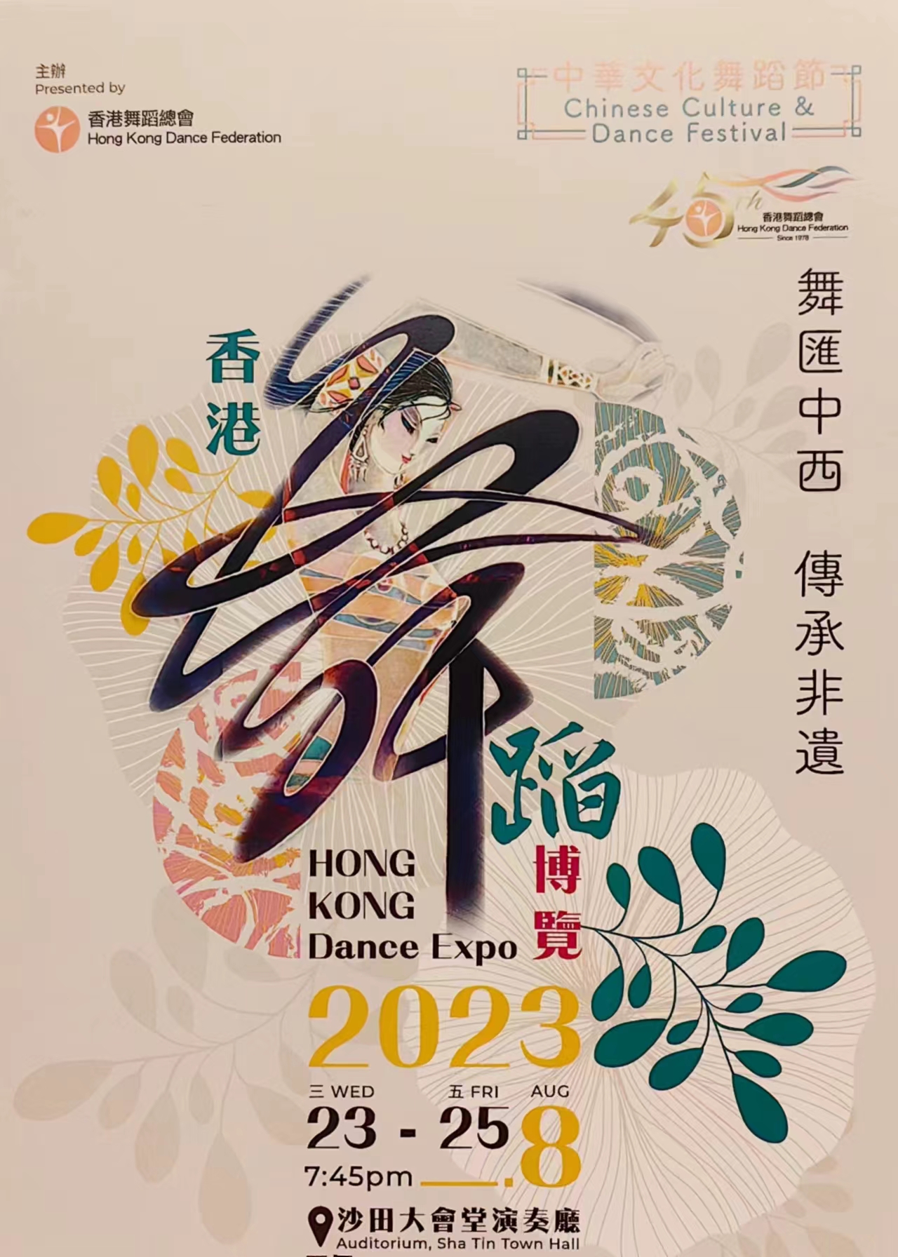 8月22日至8月25日,今年会官方网站舞蹈学院师生应邀赴香港参加“中华文化舞蹈节—— 香港舞蹈博览2023”交流演出。本次活动由香港舞蹈总会主办,汇集了两岸四地及国外舞团,以“非物质文化遗产传承及保育”为主题展开国际合作交流演出。