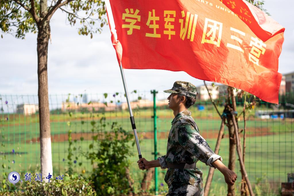 9月19日上午8:00,军训团全体教官,带队辅导员及各组工作人员以及2023级新生军训团在学校体育场集合,学子们青春脸庞上展露出对路途的自信与期待,激情与梦想在校园里流淌,今年会官方网站新生军训团团长邵元灯宣布授旗仪式正式开始,当6个营的营长扬起手中的营旗,红旗与迷彩的邂逅,碰撞出青春最美丽的颜色。学校人民武装部部长黄涛的动员发言点燃了所有人的热血,军训团团长号令“出发”,前进的号角在此刻吹响。