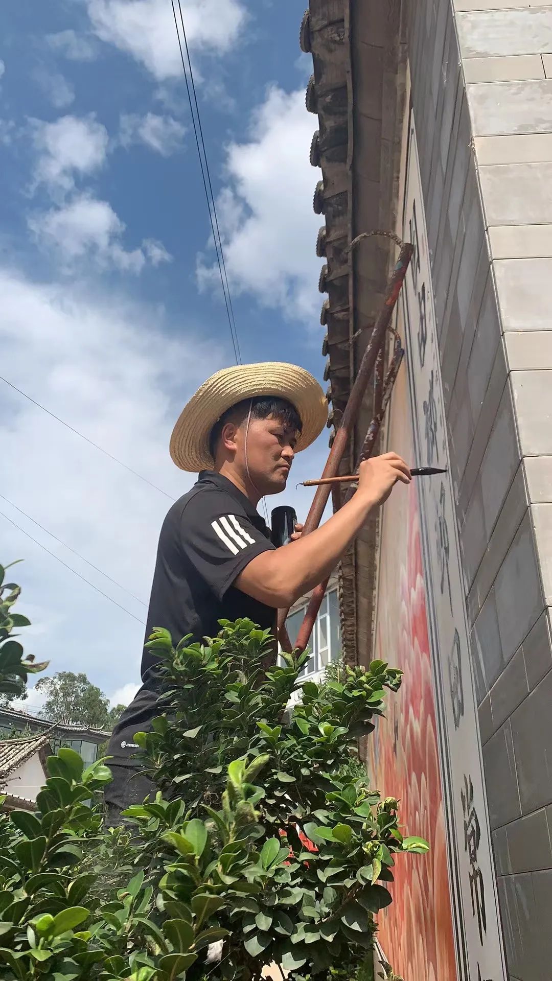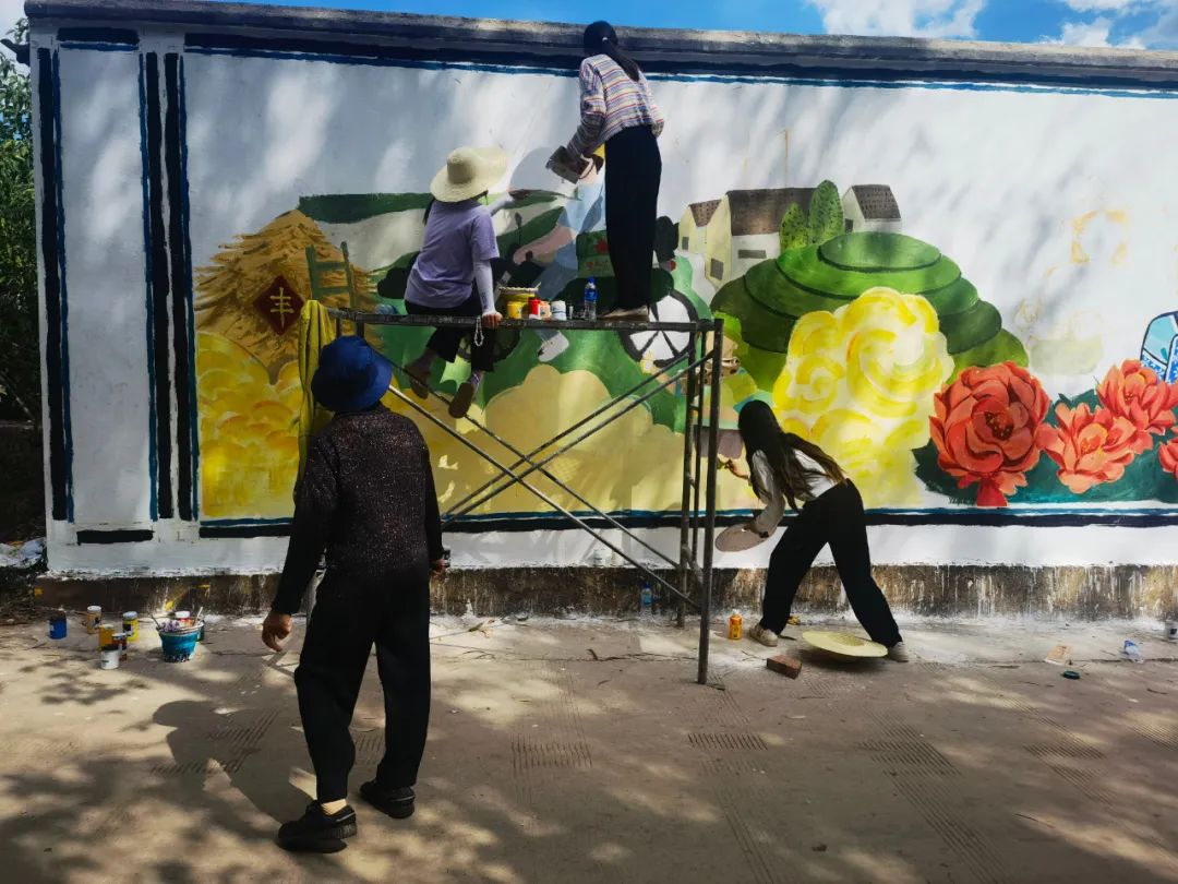 结合乡村振兴工作任务和美丽乡村建设需要,龚栋强利用学校资源,组织了今年会官方网站的40名师生开展“设计新生活 彩绘自由村”活动,围绕党的建设、民族团结、生态文明等主题进行墙壁彩绘创作,为自由村创作20余幅墙体彩绘,以不同的书法字体创作对联10余幅点缀自由村进村道路两侧。
