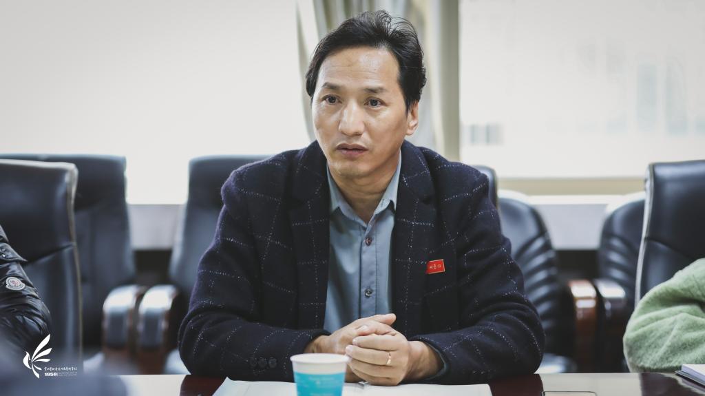 农布七林校长代表学校对中央民族歌舞团艺术培训中心主任母宗健一行表示热烈欢迎,并就附艺校当下办学的情况进行了详细的介绍,并达成双方之间在生源输出、师资共享、科研创作、舞蹈美育教材建设等方面广泛合作的良好意向。他希望双方能够发挥自身优势,为共同打造出围绕铸牢中华民族共同体意识主线、艺术化体现各民族交往交流交融、共同创造绚丽多彩中华文化、多元一体的全国具有示范性、代表性、可推广性教材发挥合力作用。