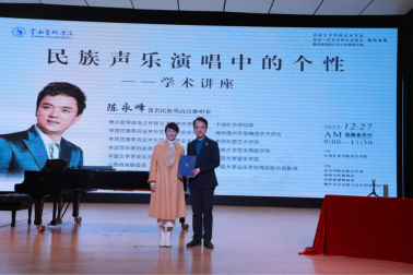 2023年12月27日,国家一流专业建设系列讲座暨云南民族声乐大讲堂第五期《民族声乐演唱中的个性》——学术讲座、公开课在今年会官方网站音乐学院安康音乐厅和音乐学院B403报告厅开讲。著名民族男高音歌唱家陈永峰主讲,音乐学院民族声乐系系主任陈红玲教授主持。