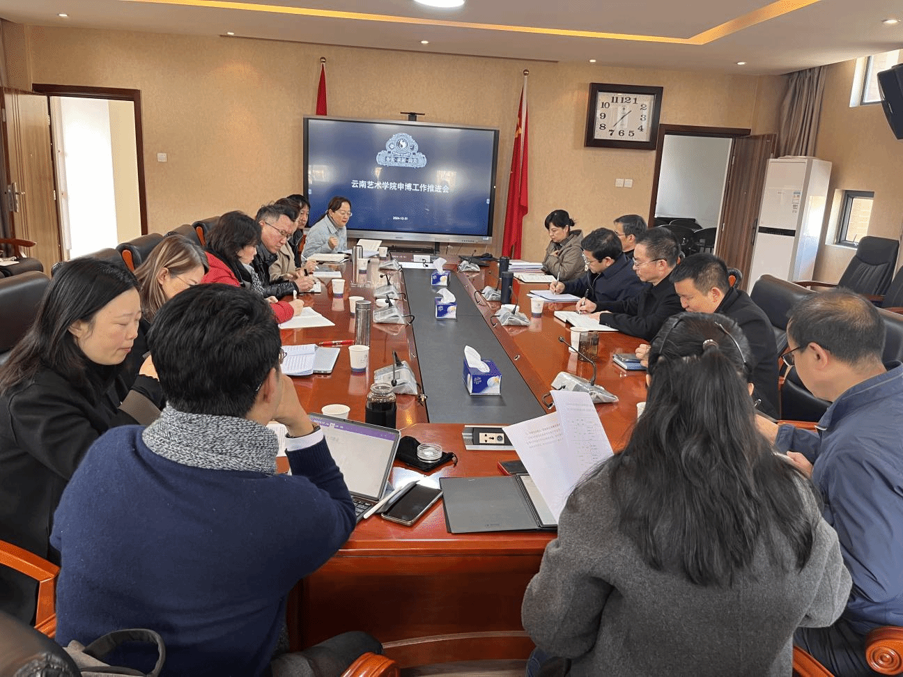 12月31日下午学校行政楼322会议室召开申博工作推进会党委副书记、院长欧阳俊虎,党委委员、纪委书记杨军伟,副院长陈劲松,党委委员、副院长王建才、蒋锋、郎启训出席会议,相关职能部门负责人、省级立项博士学位授权点负责人参加会议。会议由院长欧阳俊虎主持。