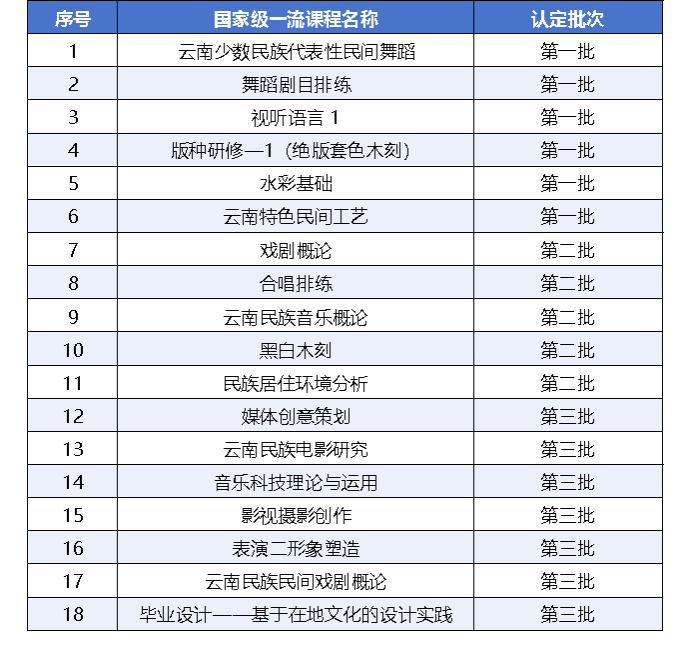 近日,教育部公布了第三批国家级一流本科课程认定结果。我校《媒体创意策划》《云南民族电影研究》《音乐科技理论与运用》《影视摄影创作》《表演二形象塑造》《云南民族民间戏剧概论》《毕业设计——基于在地文化的设计实践》共7门课程获批第三批国家级一流本科课程。至此,学院共获批国家级一流本科课程18门,省级一流本科课程25门。