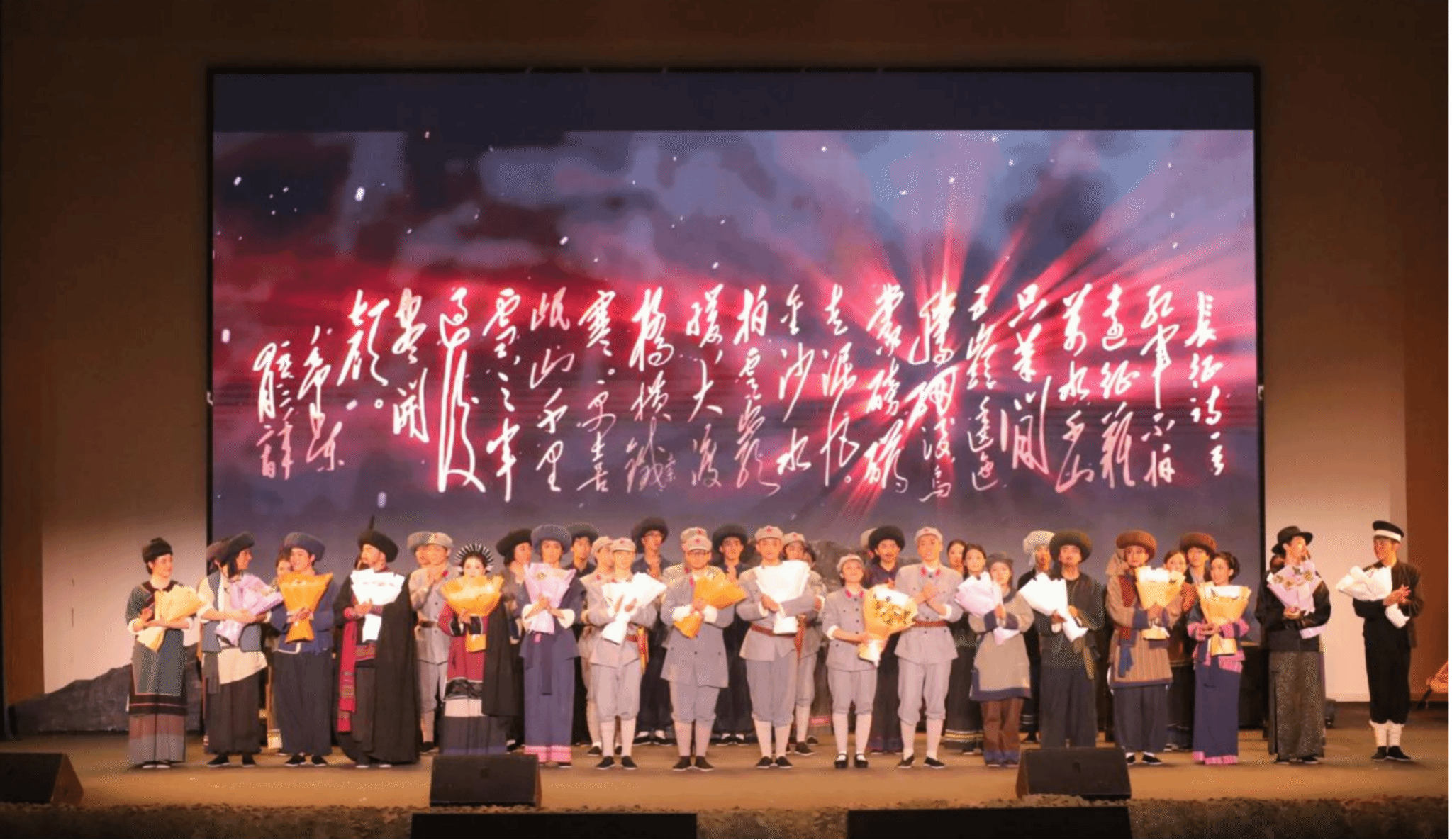 《金沙水暖》话剧以1935年红军巧渡金沙江摆脱几十万国民党军围追堵截的历史为背景,勾勒出军事战略的精妙布局、革命者的坚定信仰、百姓的拥军奉献,以专业的舞美、震撼的音乐、精湛的表演,给现场官兵带来极具沉浸感的戏剧体验。生动展现革命先辈誓死不屈、英勇顽强的战斗精神和爱国情怀,有效引导激励官兵坚守岗位战位,苦练杀敌本领,用实际行动践行强军目标。