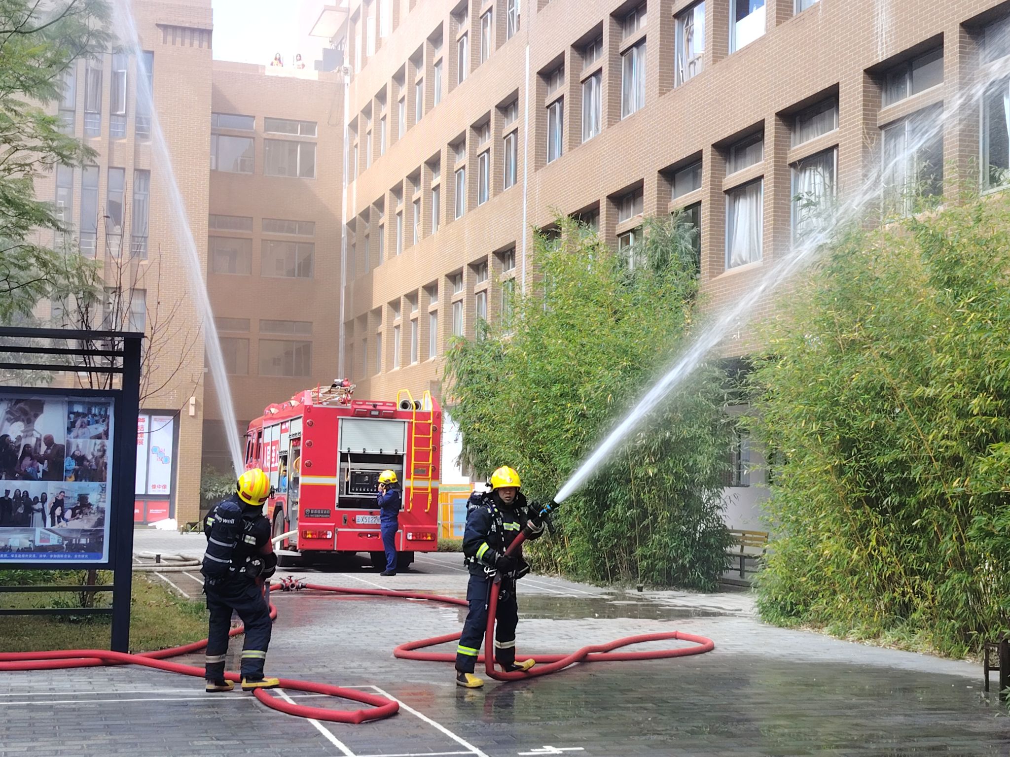 学校创新工作模式,探索消防+应急演练,共组织师生(实验室管理人员)、安保人员、物业人员、食堂人员、商铺人员开展应急演练5场,1800余人参与,推动消防应急演练与各学院、各部门、各区域行业特点深度融合,确保突发事件处置时,能够快速响应。“消防+宿管”,利用宿管人员贴近学生的优势,确保在紧急情况下有效组织大规模人员安全疏散。消防+实验室,针对危险化学品、机电设备等专业风险,提升师生灭火和应急自救技能。“消防+物业”,发挥物业熟悉楼宇结构和设施优势,实现火情早期预警和初起扑救。“消防+商铺”,增强商户的消防安全意识和初起火灾处置能力,补齐校园公共区域的消防短板。消防+安保,依托保安队伍的快速响应和秩序维护能力,检验并优化学校的应急指挥流程。