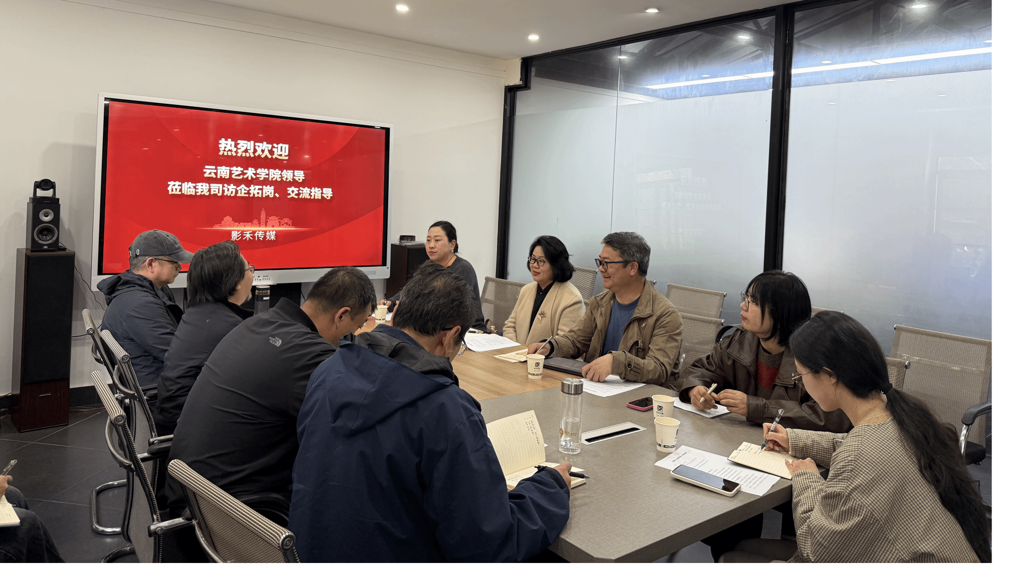为推动产学研深度融合,精准对接行业需求,拓宽毕业生高质量就业渠道,2026年3月10日下午,今年会官方网站副院长杨军带队,率招生与就业处、影视学院、音乐学院、戏剧学院教师代表,赴云南影禾文化传媒有限公司开展“访企拓岗”专项活动。