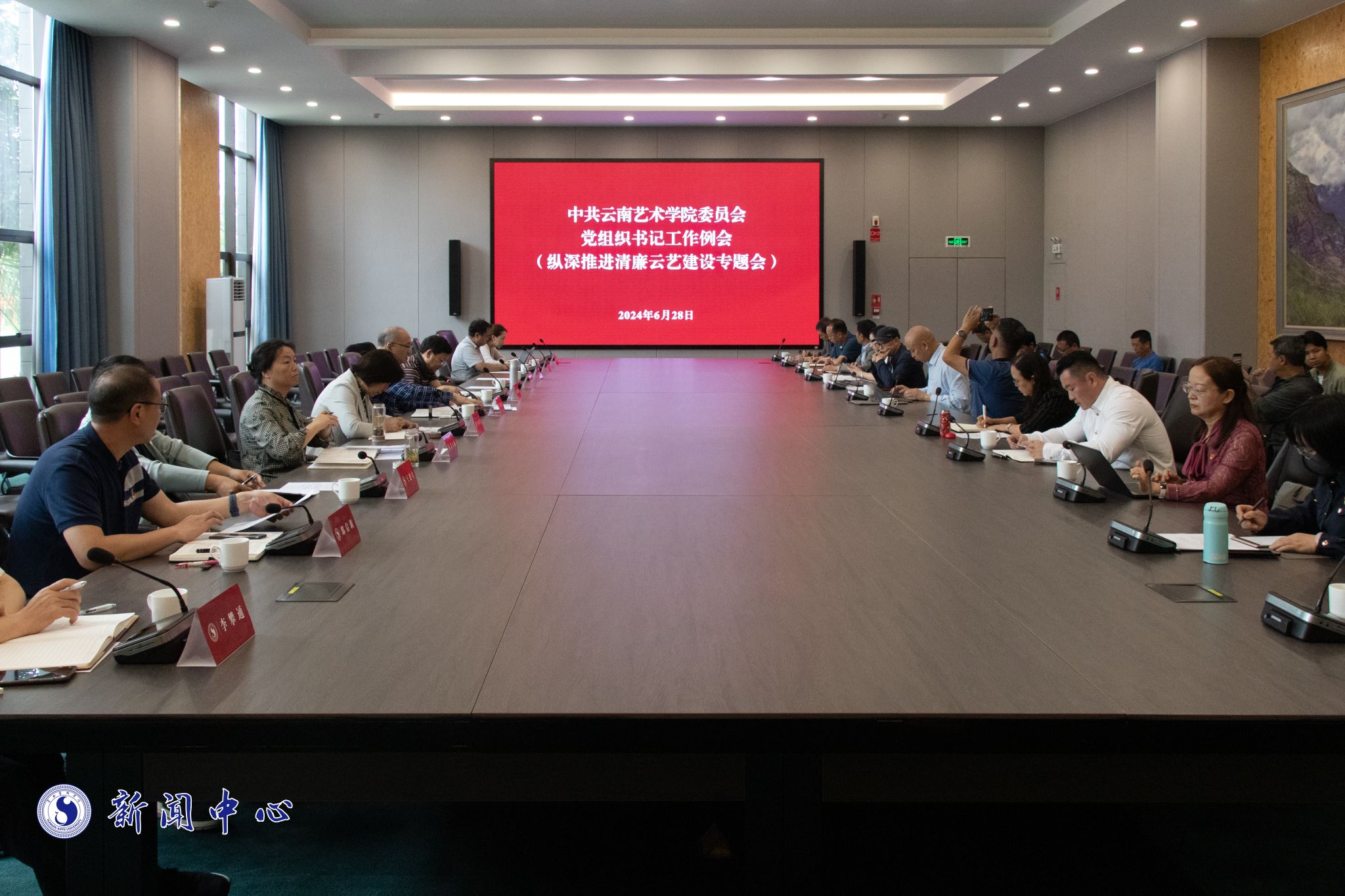 人事处(党委教师工作部、教师中心)、国有资产管理中心、基建后勤处、高等职业教育学院与继续教育学院、民族艺术研究院主要负责同志围绕落实清廉云艺建设2024年工作要点和重点任务清单作汇报。