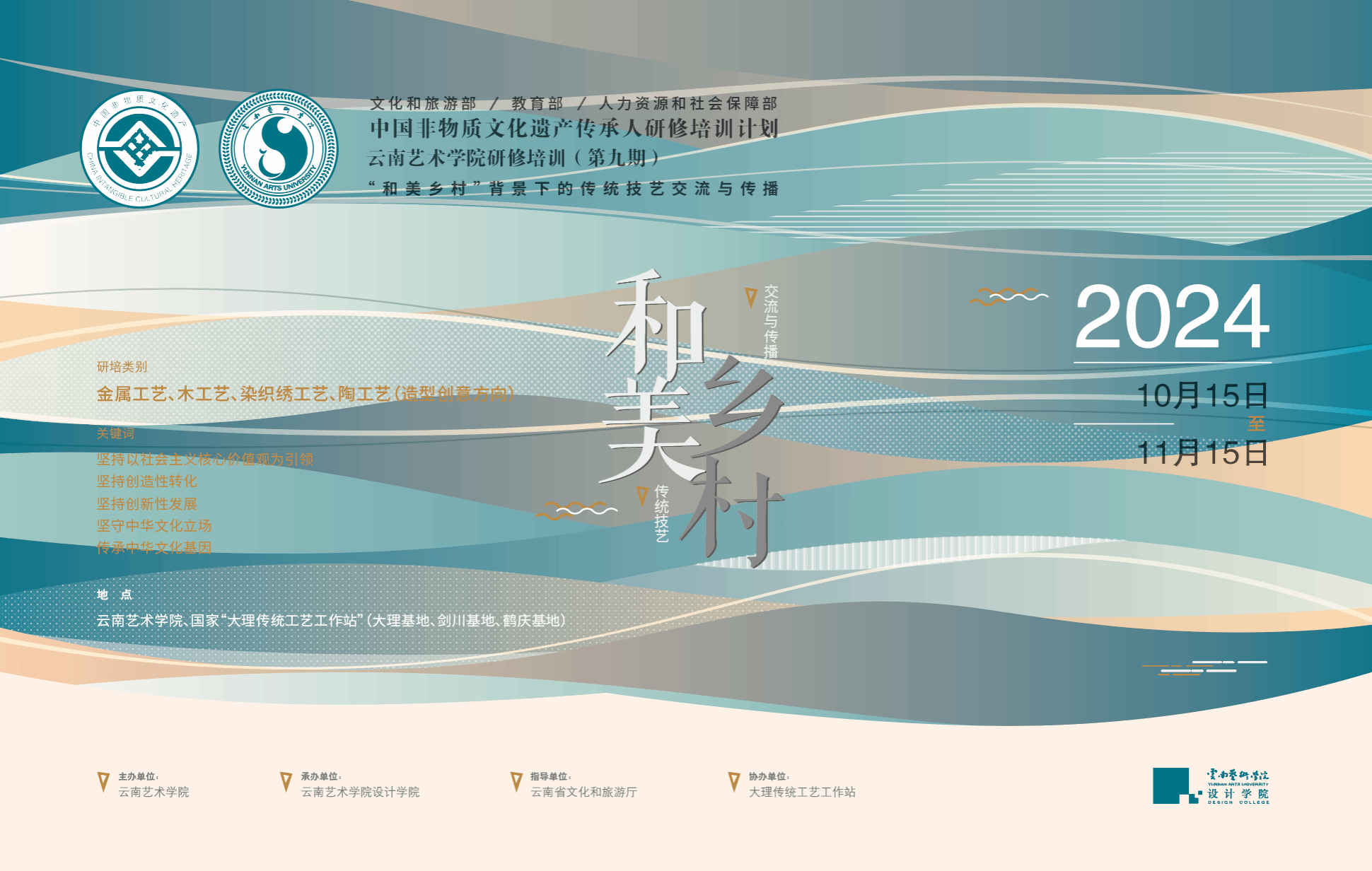 此次研修培训主要以金属工艺、木工艺、染织绣工艺、陶工艺(造型创意方向)为项目类别开展。