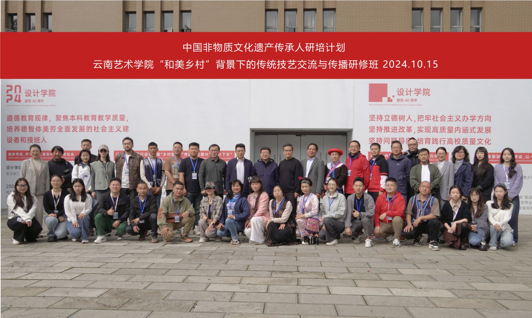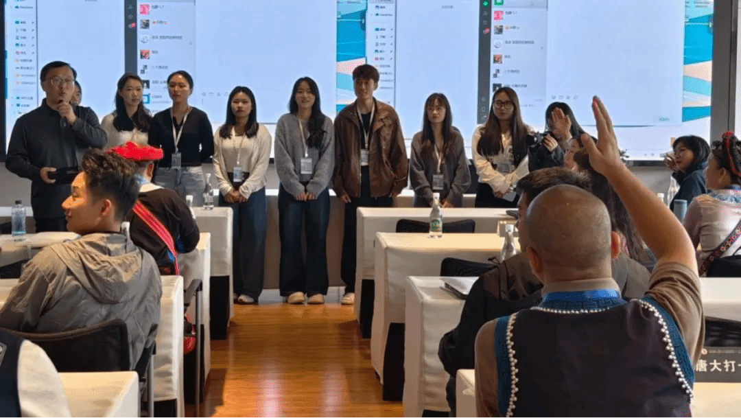 开班仪式后的主题班会上,教师代表向学员介绍了工作团队情况。此次研培将采用“1+N”的授课形式,利用高校本科、研究生资源,结合校人工智能重点实验室、云平台服务、常态化课程等内容,力求与学员共同完成有质量、有分量的研培作品,助力文旅共融下的和美乡村建设。实现参研学员学有所得、学有所获,“出良品、产优作、重传播、强呈现”。将传统技艺与品牌设计结合起来,迸发出新的设计概念与呈现方式。同时,课程结合需求,其间将广泛邀请国家级、省级代表性传承人和非遗研究、非遗应用、非遗品牌策划、人工智能应用相关专家、学者等参与课程教学、指导。