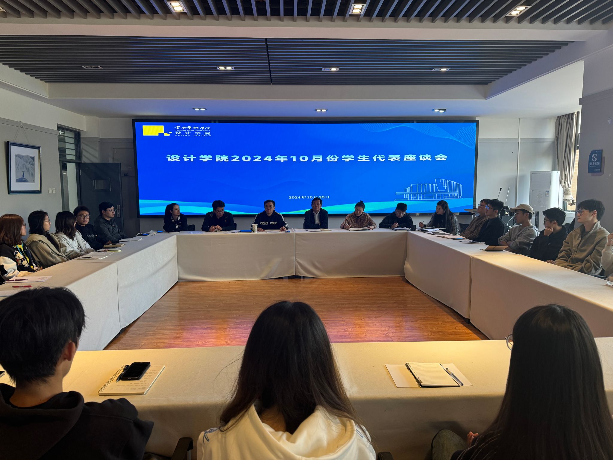 按照学校《关于组织召开2024年10月份学生座谈会的通知》要求,设计学院于2024年10月30日下午15:00在202会议室组织召开10月份学生代表座谈会。设计学院党政领导、各行政科室负责人、全体辅导员、研究生和本科生各专业(方向)代表共计40余人参加了本次座谈会。