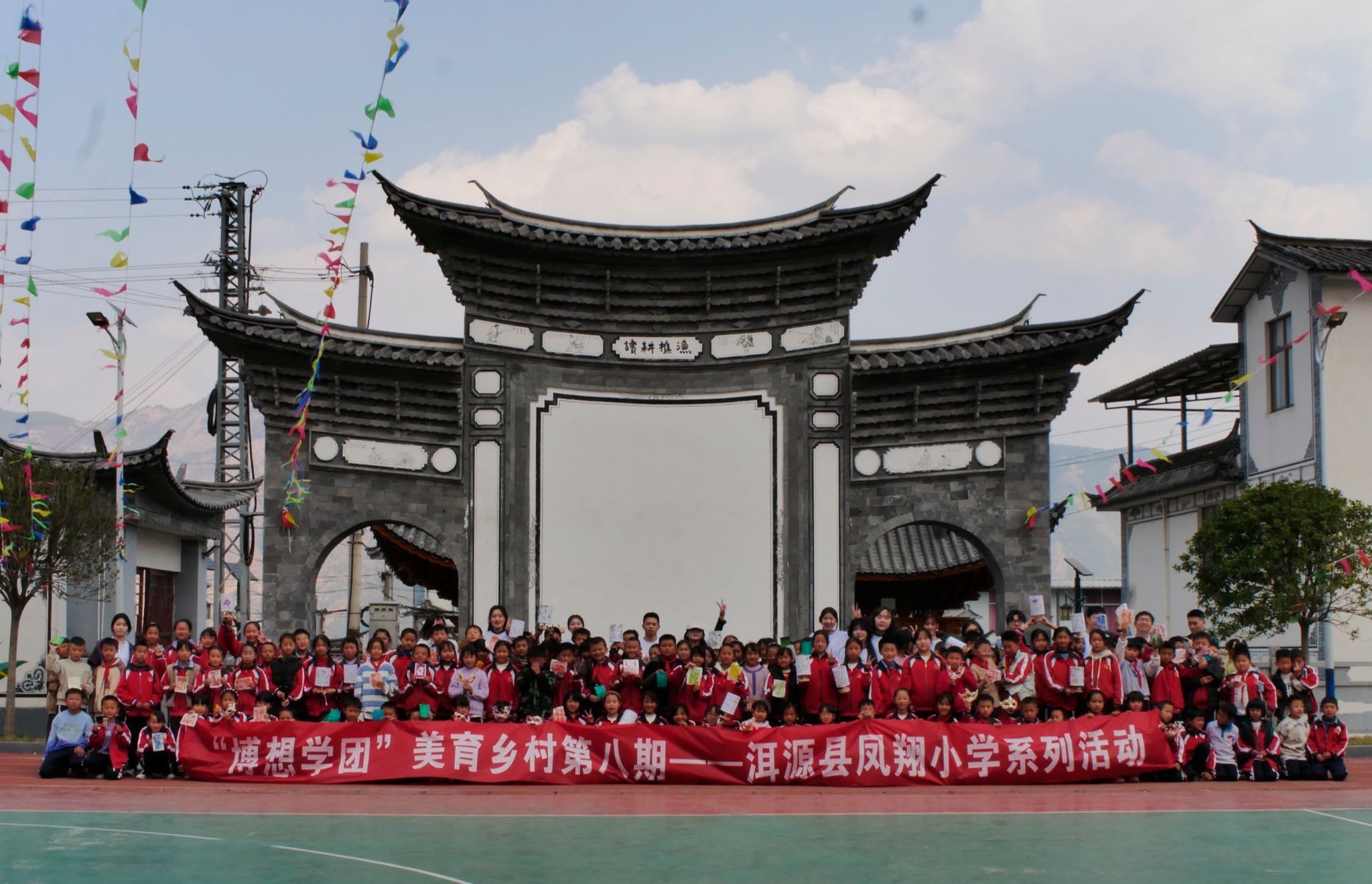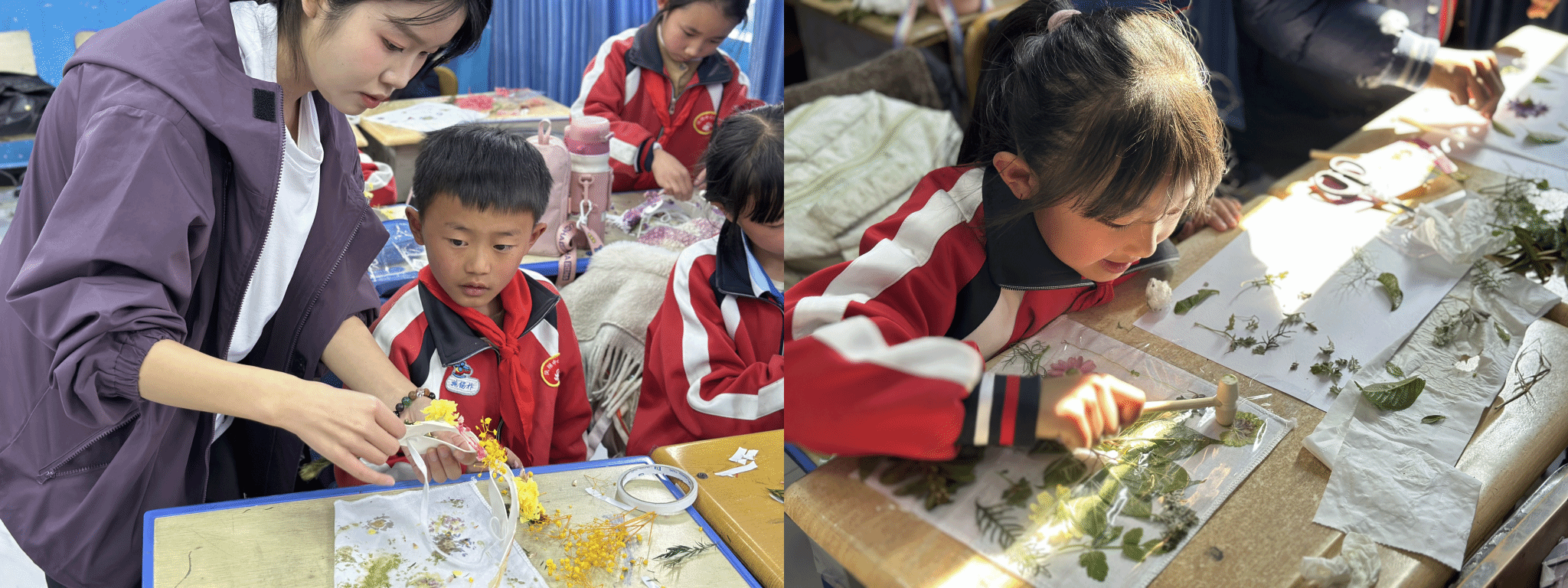2025年3月,“博想学团”第八期乡村美育志愿服务社会实践活动在大理白族自治州洱源县凤羽镇凤翔小学开展。此次活动以“艺术赋能成长”为核心理念,为凤羽镇的180余名孩童带来了丰富多彩的美育课程。团队通过“理论研习+实践创作+文化传承”的三维育人模式,结合当地非遗文化资源,将传统手工艺转化为生动的教学载体,创新开发了“白族扎染工作坊”“甲马艺术体验营”等特色课程,孩子们兴致勃勃地参与到竹编、扎染、甲马、剪纸艺术等传统技艺的学习中,触摸着乡土文化的根脉,还在自然美学探索课程中,以山川草木为课堂,用自然美术激发创造力,领略世界的缤纷多彩。
