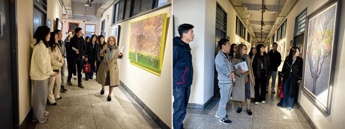 上午10:00,美术学院曹悦院长陪同莅临本次座谈交流会的各位领导参观了美术学院的教学空间及师生作品长廊。参观过程中,曹悦院长详细介绍了学院的教学设施、特色工作室及各专业的发展状况,并就艺术人才培养、艺术创作辐射社区建设、艺术实践服务社区发展等方面进行了深入交流。雨花街道各位领导均表示,通过实地参观走访,对美术学院的教学理念、学生专业能力等有了更为直观地了解。