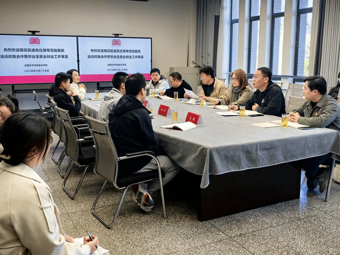 为进一步深化校地合作,推动毕业生高质量就业、创业,3月25日上午9:00,美术学院优秀毕业生孙乾博应邀回院座谈交流。上午10:00,雨花街道党工委副书记李羡歌、龙潭社区书记李宁、颐明园社区书记李雄丽、营盘社区书记马陈然、青阳社区书记马挺等一行14人到美术学院洽谈校地合作及毕业生就业创业等相关事宜。美术学院党委书记刘恩权、院长曹悦、党委副书记何君、副院长沐晓熔、团委书记徐中宏及学生管理科全体辅导员参加会议。本次会议由美术学院党委副书记何君主持。