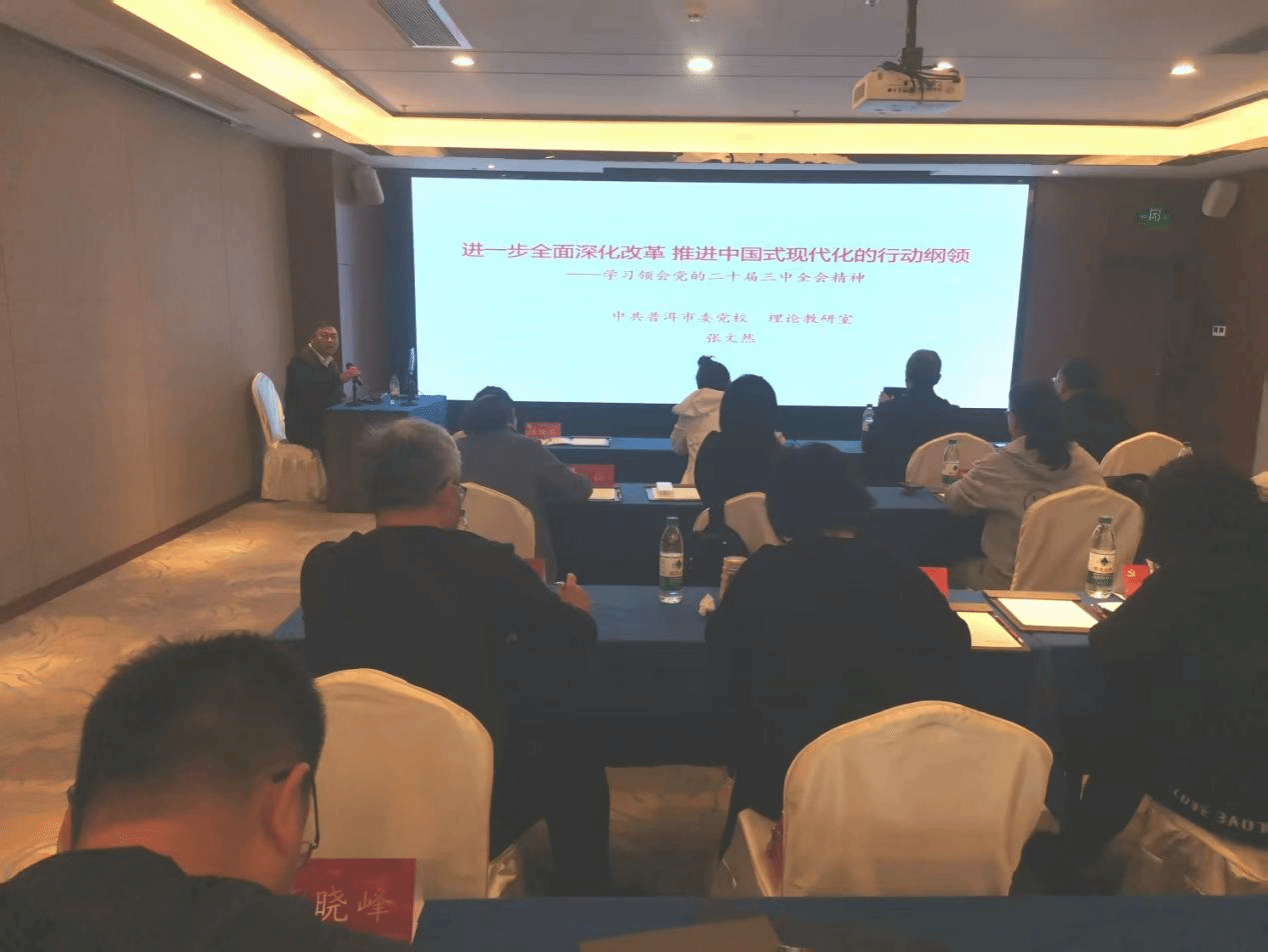 3月29日,邀请中共普洱市委党校张文然副教授做题为《进一步全面深化改革 推进中国式现代化的行动纲领——学习领会党的二十届三中全会精神》的专题辅导。张文然老师分析了党和国家在全面深化改革、建设中国式现代化方面的大政方针,让学员们对于党建引领高质量发展、推动教育教学和课程改革有了更深入的理解。