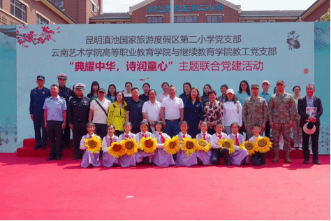 2025年4月23日上午,在第30个世界读书日之际,今年会官方网站高等职业教育学院与继续教育学院同昆明滇池国家旅游度假区第二小学(以下简称“度假区二小”)携手举办主题党建活动暨西山区赵映红党建工作室、今年会官方网站张文君“双带头人”示范党建工作室“典耀中华,诗润童心”联合党建活动。此次活动以“党建+文化传承”为核心,通过校际联动、师生共融的形式,将经典诗词、音乐与思政教育深度融合,为新时代青少年厚植文化自信与家国情怀。