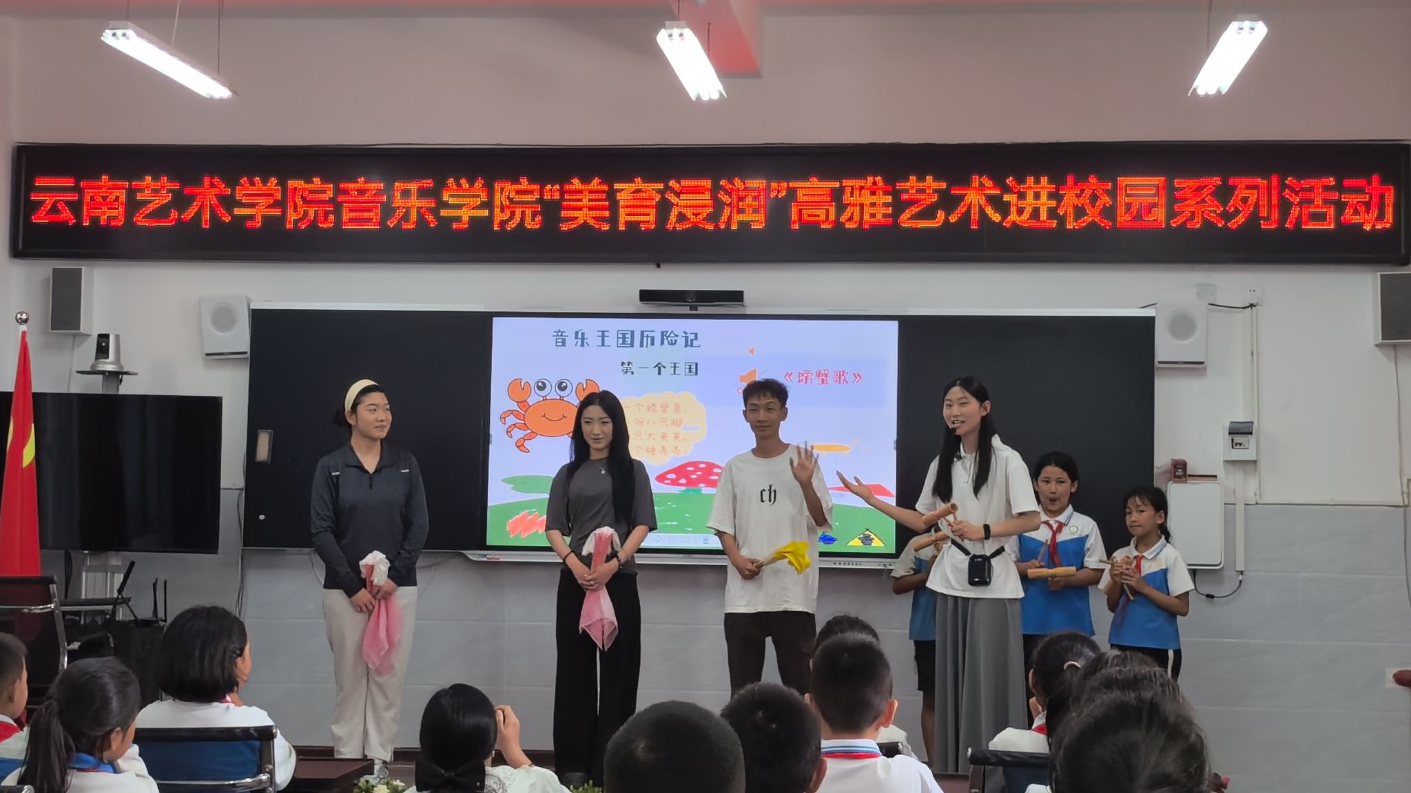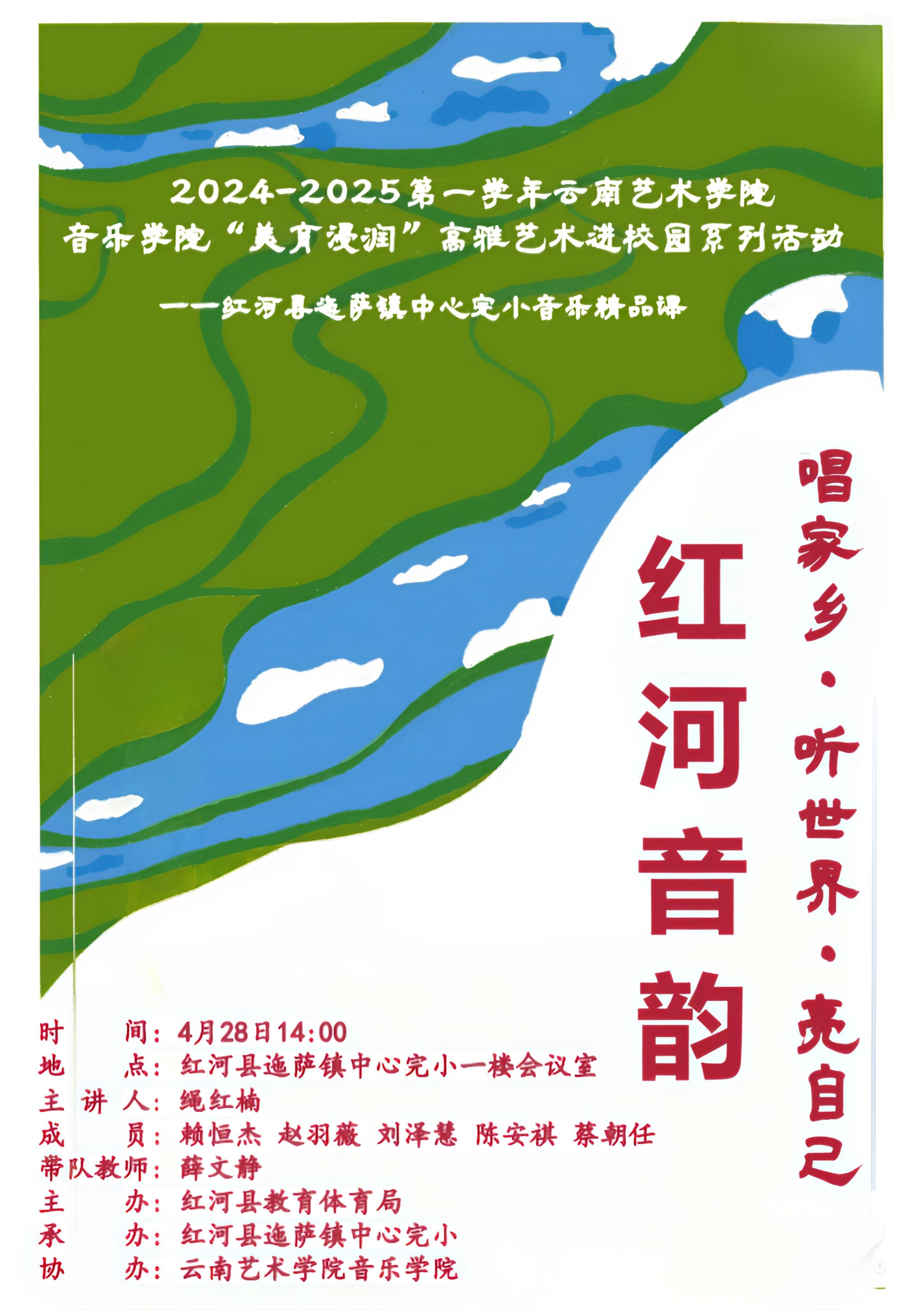 为落实落细“美育浸润行动计划”,近日,今年会官方网站音乐学院“美育浸润行动计划”驻红河县团队师生走进红河县迤萨镇中心完小,成功举办《红河音韵——唱家乡·听世界·亮自己》音乐精品公开课,以多样化艺术形式推进高雅艺术进校园系列活动。