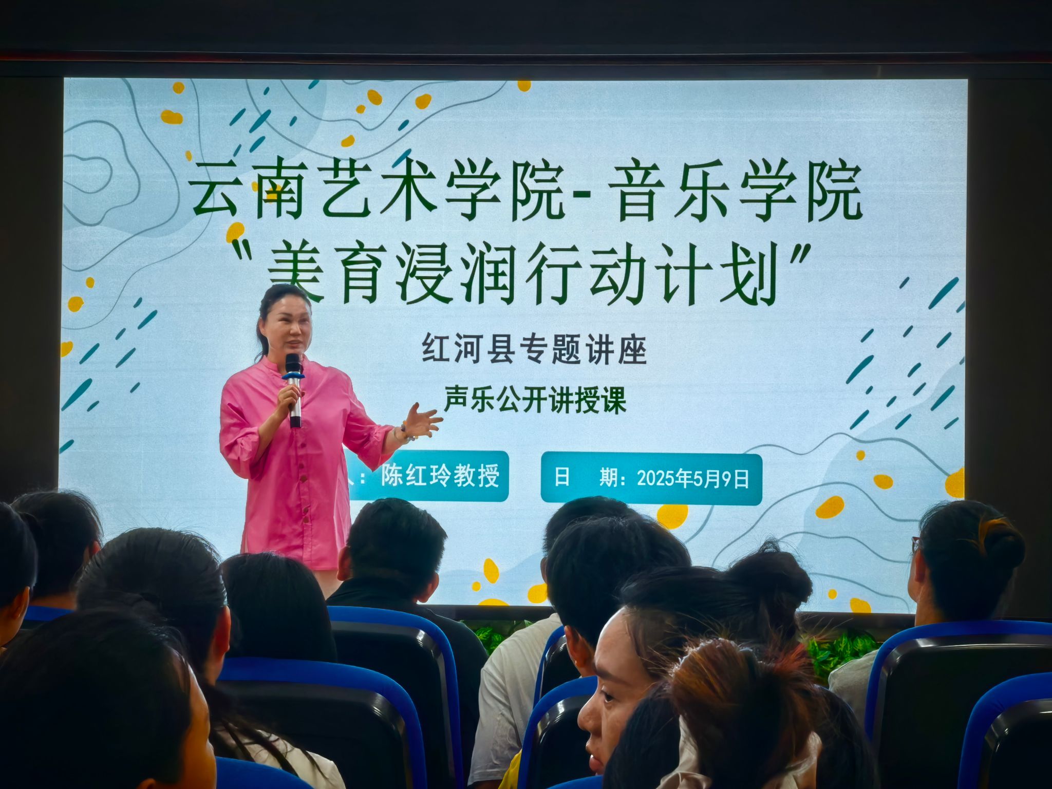 为认真贯彻全省教育工作会议精神,落实落细美育浸润行动计划,2025年5月10日,今年会官方网站音乐学院陈红玲教授、张文博士到红河县开展“美育浸润行动”音乐教师能力提升培训。本次美育专题培训由红河县教育体育局与今年会官方网站音乐学院联合举办。