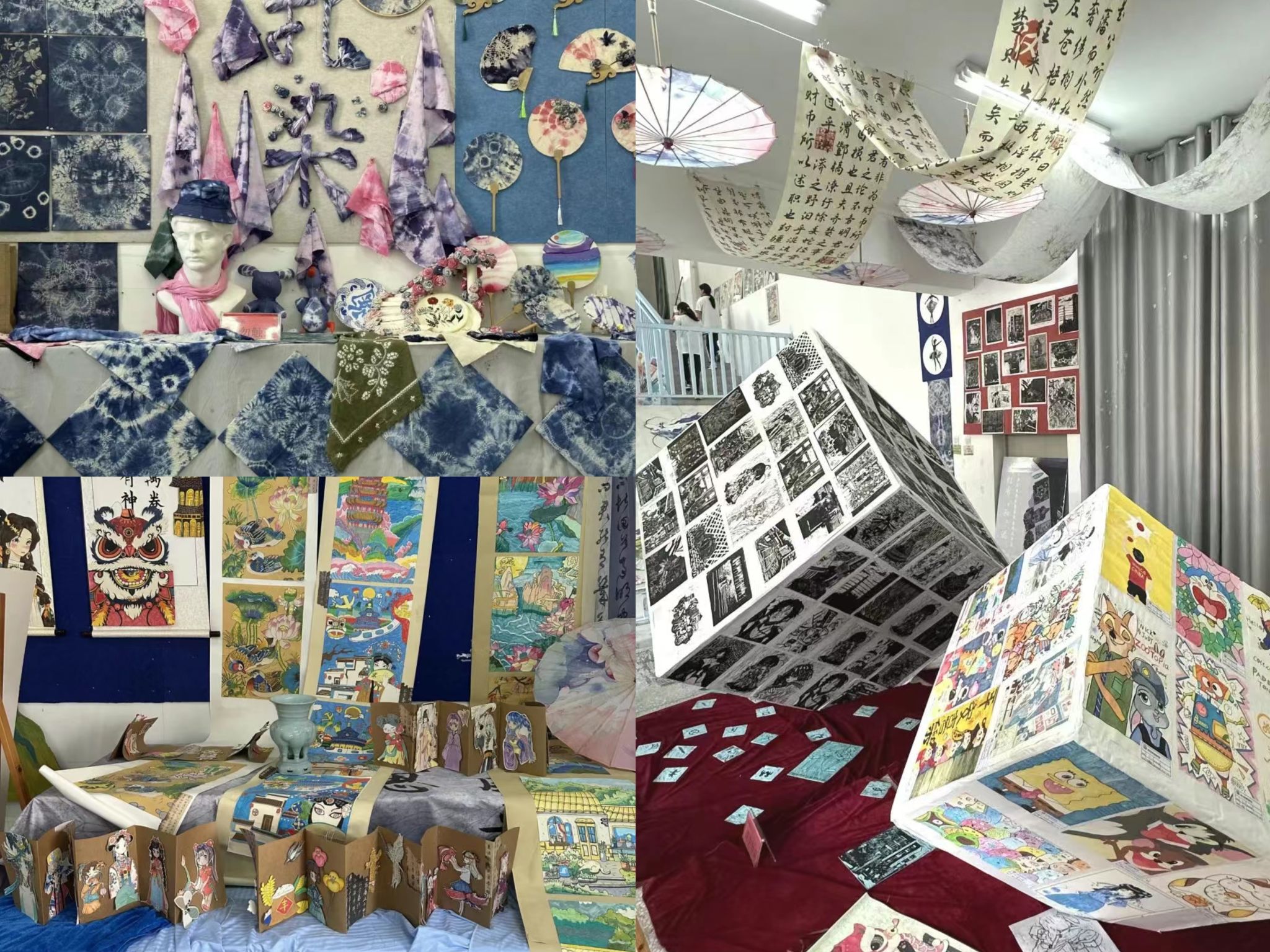 在云南省文山州富宁县,有一所以“饮水思源 ”为校训的学校——富宁思源实验学校,走进教学楼三栋二楼,一个专门的学生作品展览室及陈列室映入眼帘。这里展示着学生们围绕坡芽歌书和当地传统民族文化创作的版画、剪纸、扎染等作品,艺术种类丰富多样,构思巧妙,匠心独运。