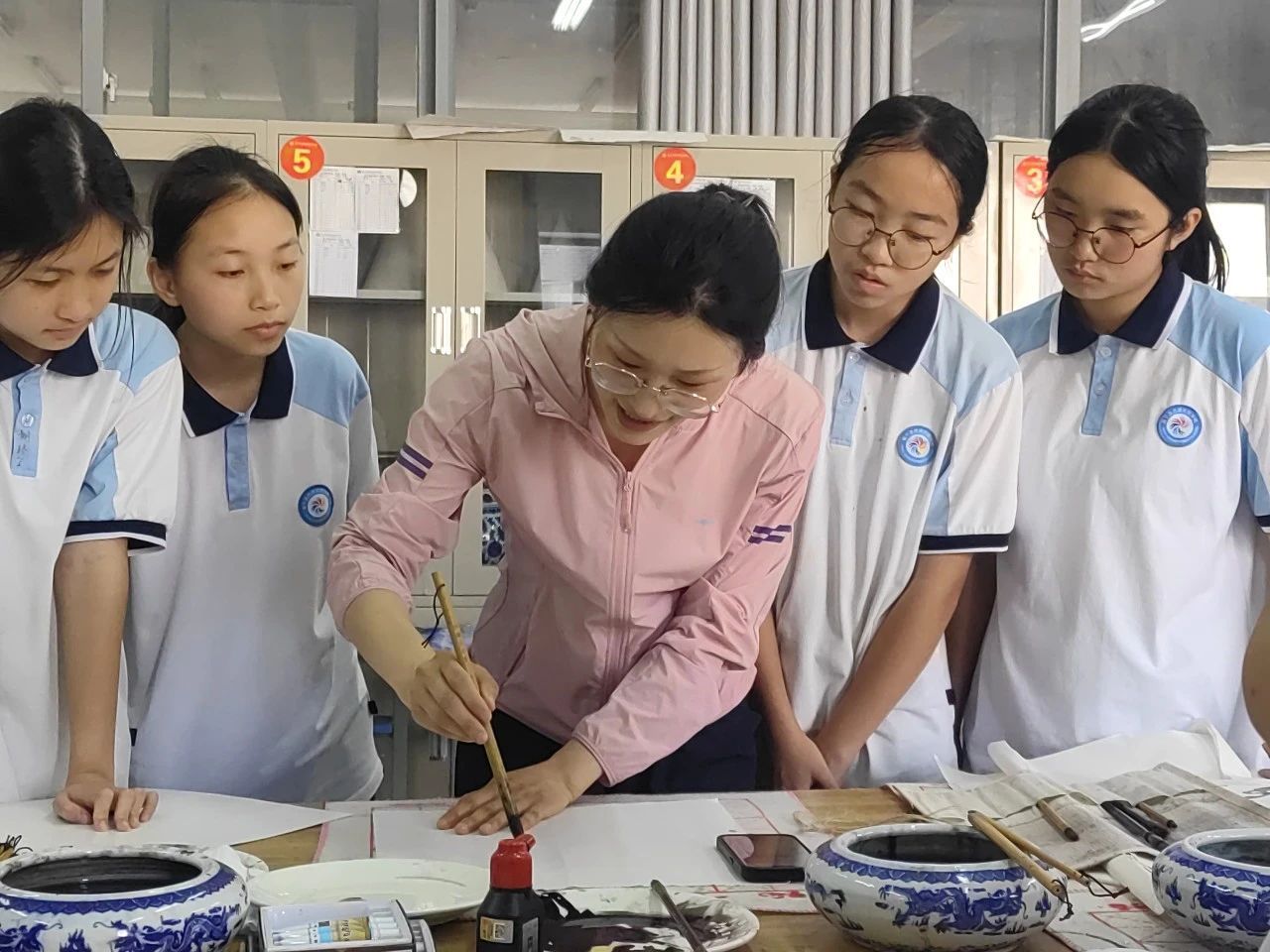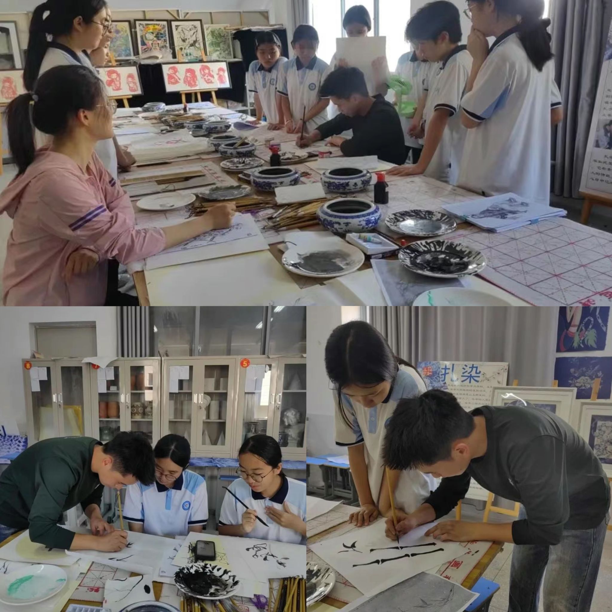 富宁县驻点全体师生一起在富宁思源实验学校研习中国画