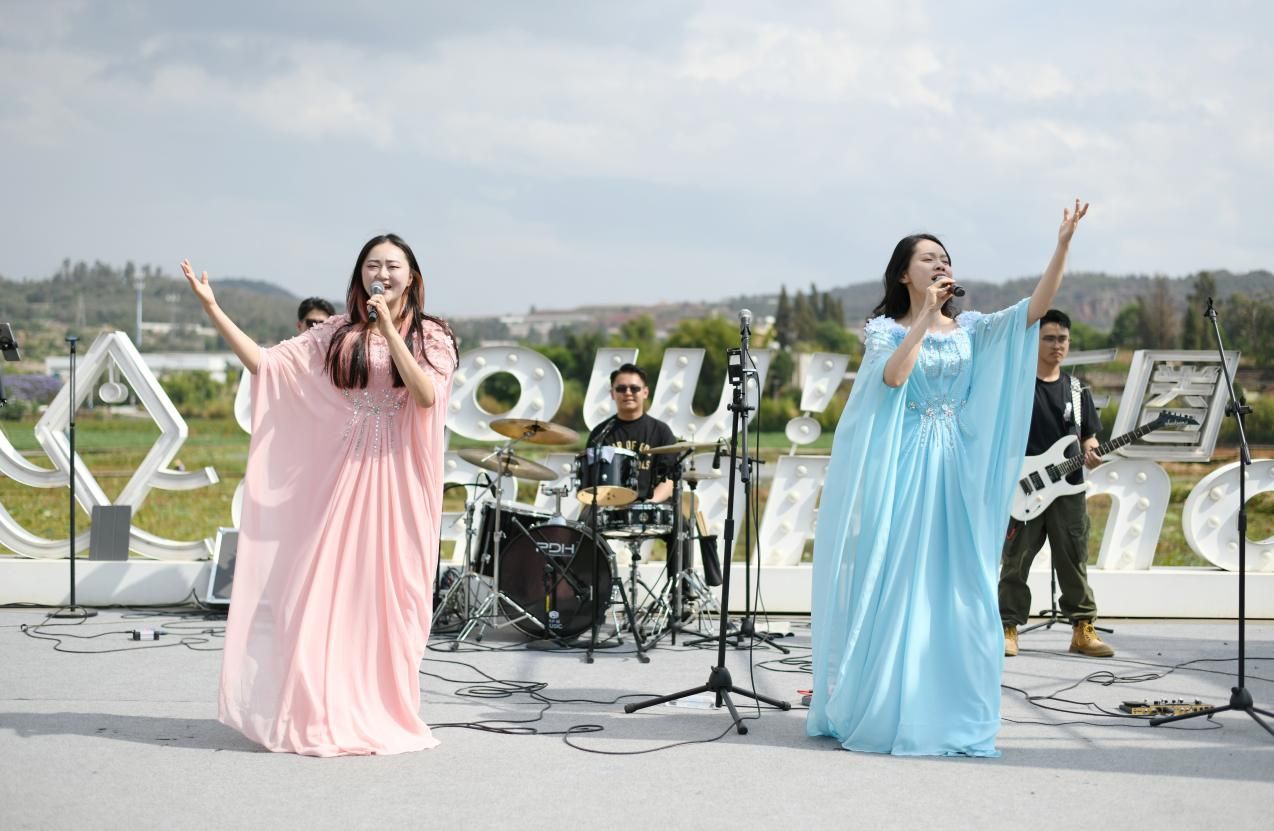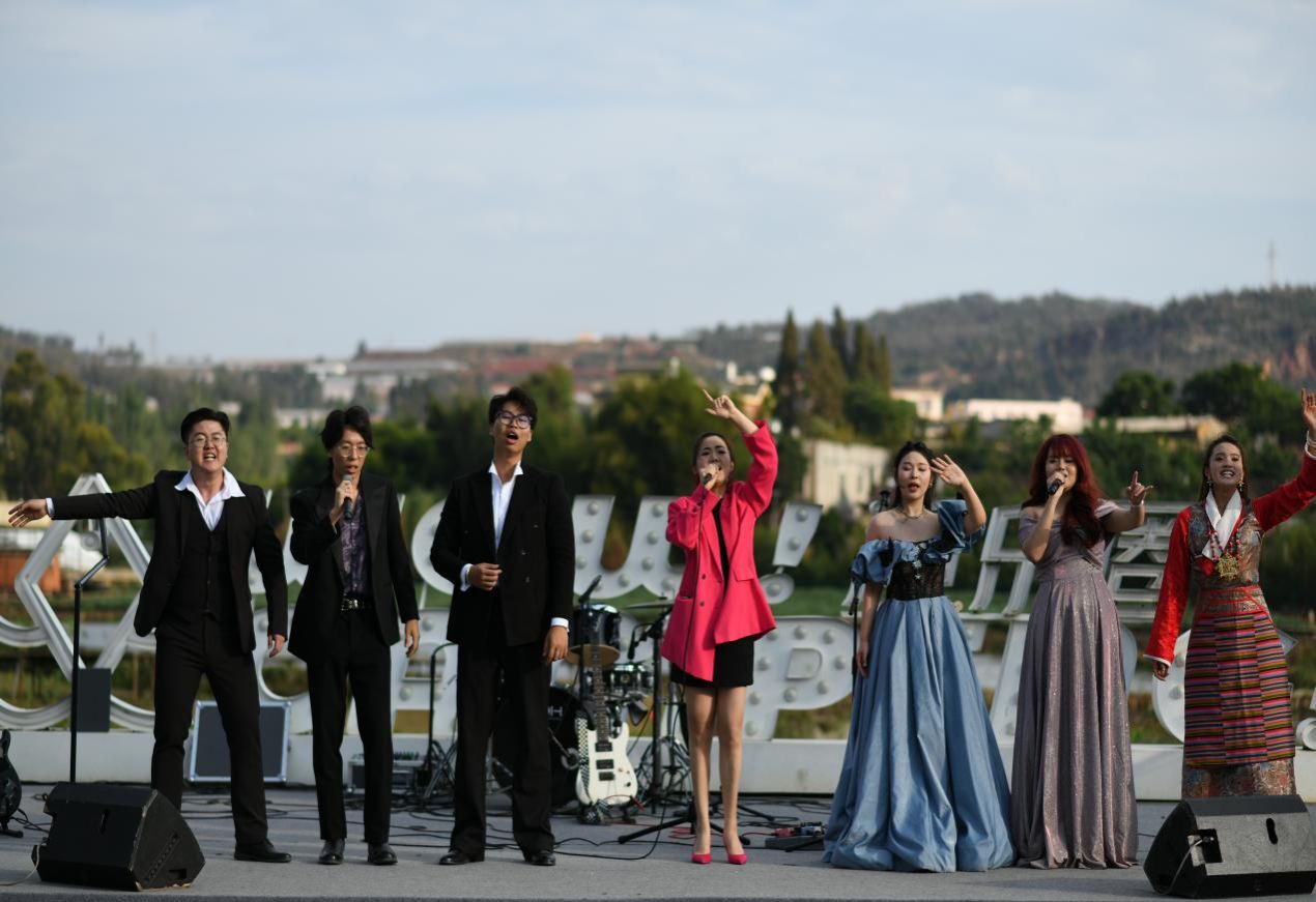 活动现场,气势恢宏的开场表演《我爱你中国》迅速点燃现场气氛,随后,2024级音乐表演专升本班同学演绎经典云南民歌《小河淌水》;云南聂耳音乐奖演唱奖获得者王卓艺老师深情演绎《大山》;二级演员、云南音乐家协会理事朱昱陶老师献唱经典音乐剧《心脏》;藏族同学益西只玛带来富有特色的藏族弦子《三朵花》;第十四、十五届中国音乐金钟奖,云南赛区美声组金奖付饶,李柔儿老师演绎大气磅礴的《劳动畅想曲》;最后旗帜乐队在篝火与烟花的氛围中演唱一系列经典流行音乐,点燃了现场激情。在烟花与夕阳的映衬下,游客们一边欣赏滇池的璀璨夜景,一边聆听动人的音乐,小渔村闲适与温情的氛围令人陶醉。