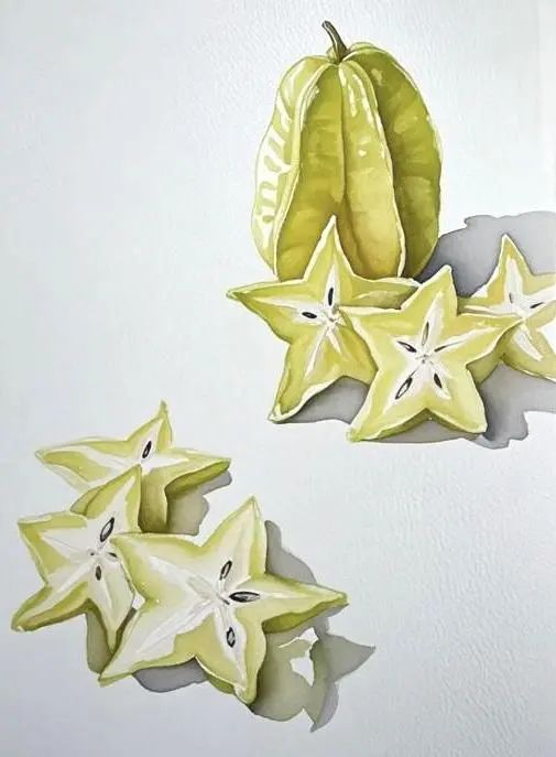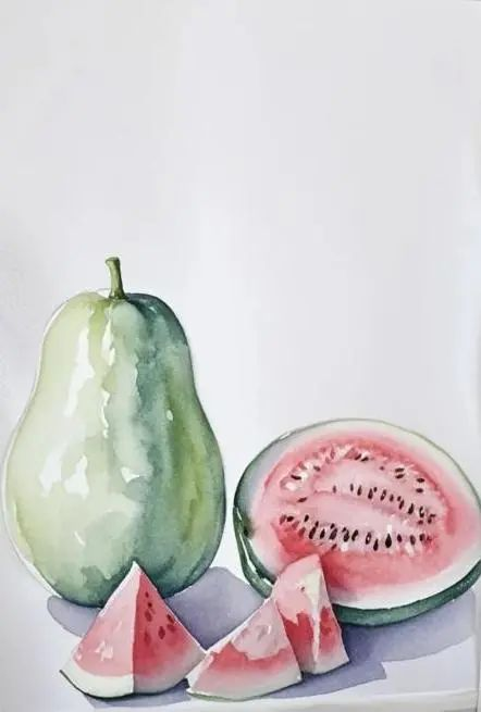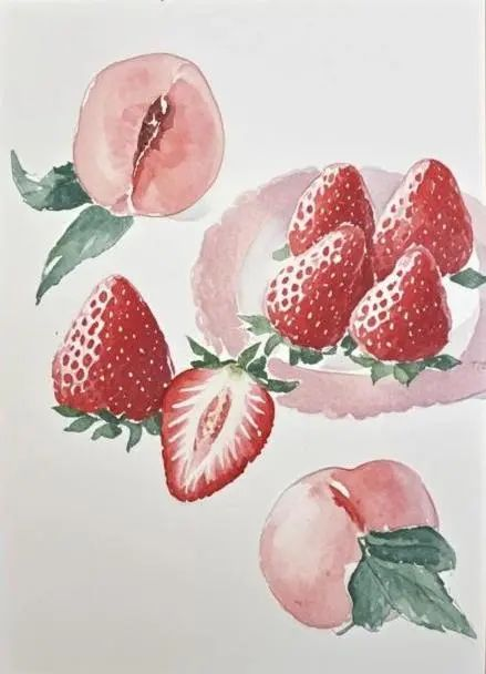 黄丽春结合富宁一中学生对水彩了解的实际情况,采用理论与实践相结合的教学方法,以通俗易懂的方式讲解水彩理论基础入门知识,让学生了解水彩画知识以及使用的工具。通过亲身示范教学,细致地指导学生掌握调色技巧以及水彩画技法的应用,让学生由浅入深地了解到水彩水果的质感与肌理的艺术表现,并耐心地引导学生们对水果进行创意构图、色彩表现。