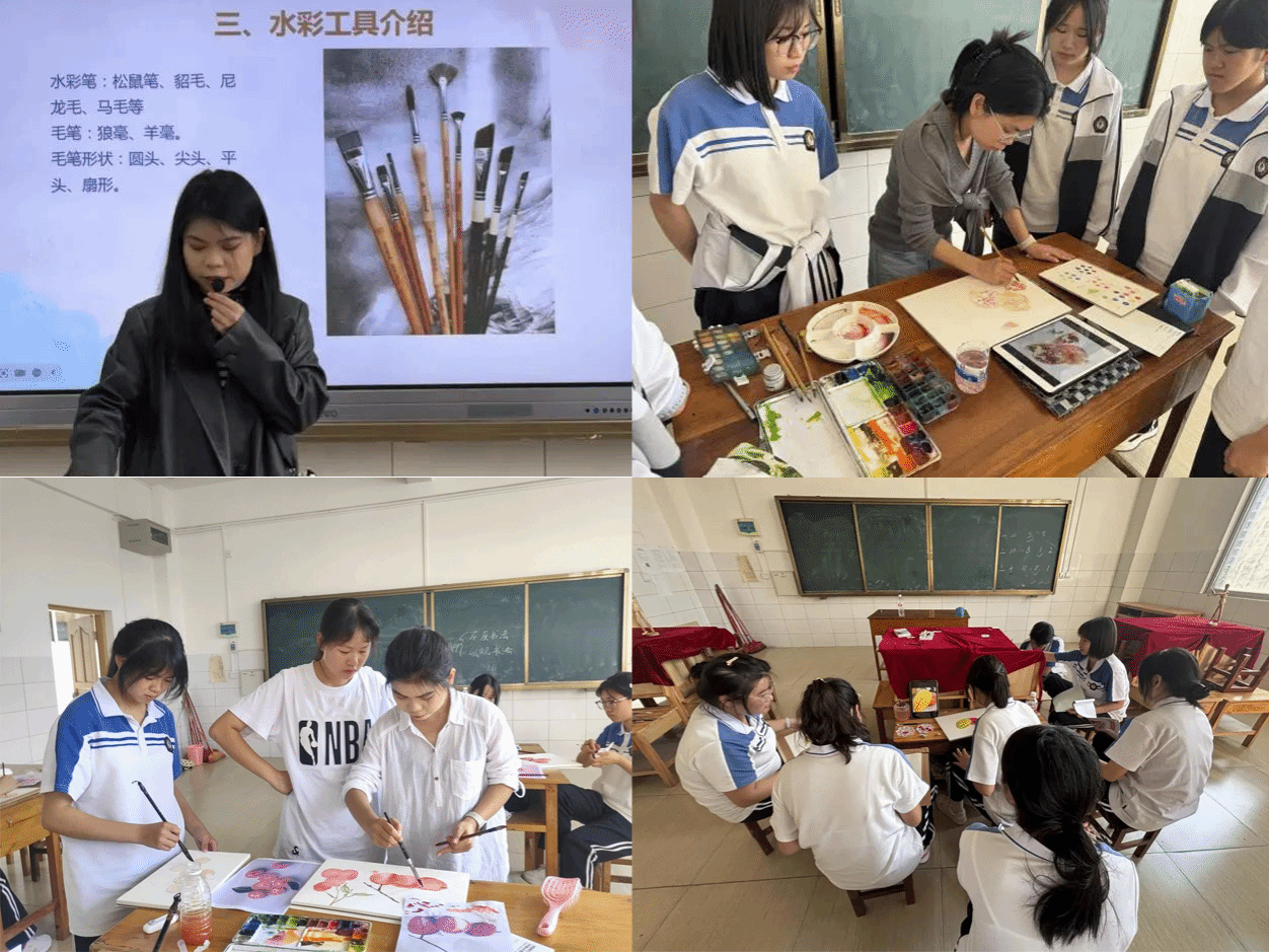 结课时,学生们举起自己的作品,在逸夫楼里的美术教室合影。黄丽春知道,这些孩子们学到的不仅是水彩技法,更是一颗感受美、创造美的心。而她自己,也在支教的过程中,重新认识了母校,重新理解了“回报家乡”的意义。