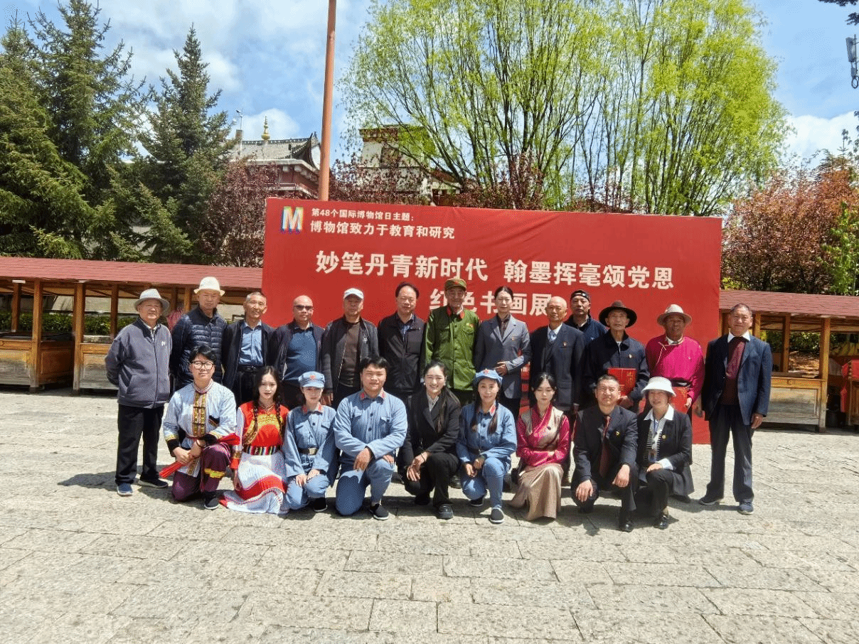 (迪庆州委宣传部副部长屈天恒、州委文明办综合科科长此仁措姆与云艺师生合影)