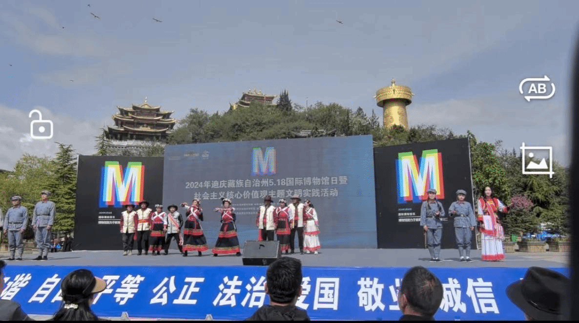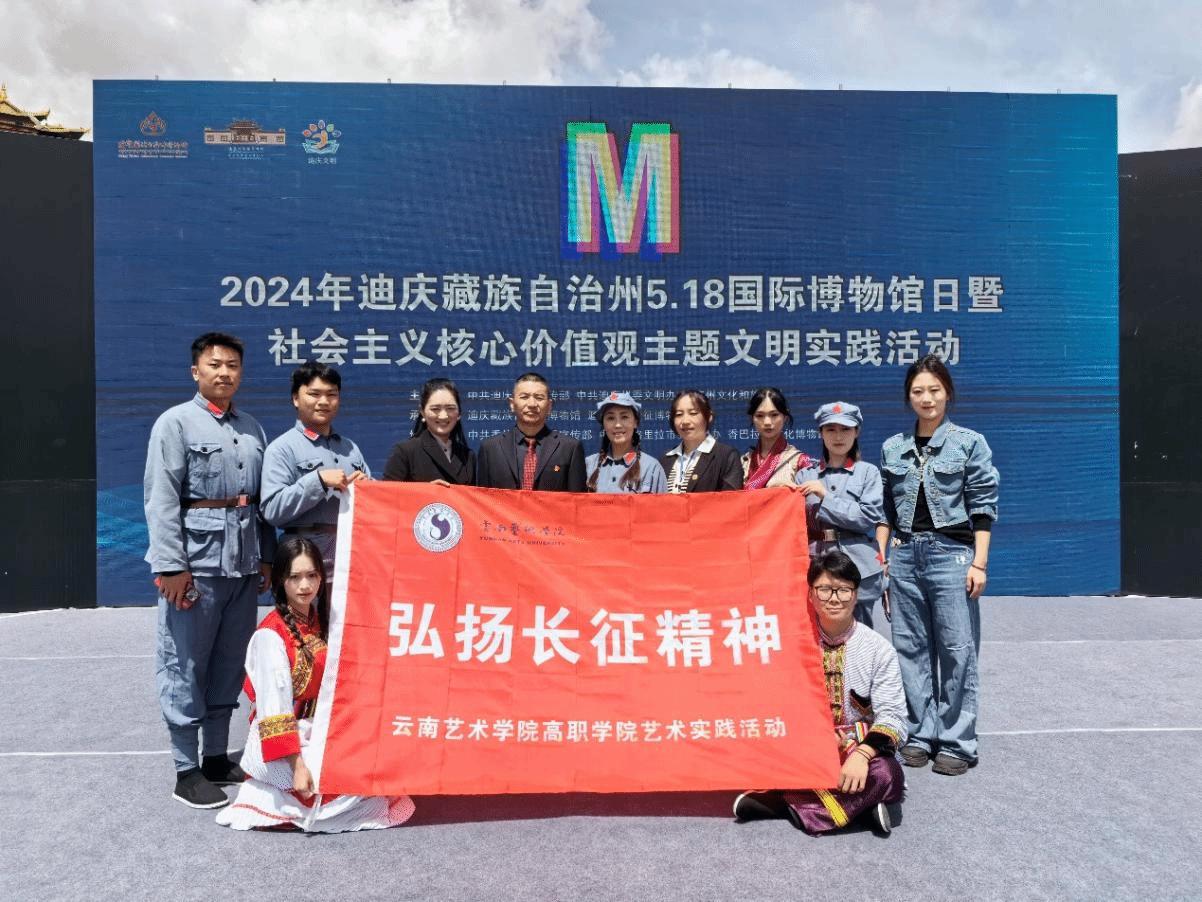 2024年5月18日上午,今年会官方网站高等职业教育学院与继续教育学院师生应邀参加“2024年迪庆藏族自治州5·18国际博物馆日暨社会主义核心价值观主题文明实践活动”,师生与香格里拉上江乡士旺村村民联合出演原创音乐剧《红旗漫卷,星耀士旺》片段。此次活动由中共迪庆州委宣传部、中共迪庆州委文明办、迪庆州文化和旅游局主办,迪庆藏族自治州博物馆、迪庆红军长征博物馆联合承办。