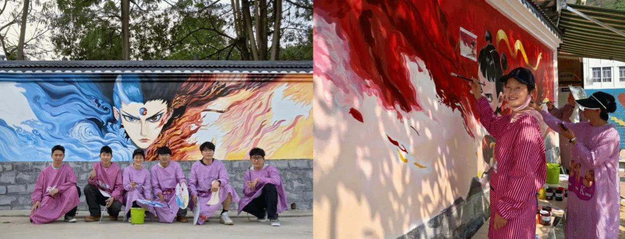 4月20日,支教师生携手特教老师,以《哪吒》为主题创作墙绘。哪吒象征着无畏、不屈不挠的精神,希望激励孩子们勇敢面对生活的挑战,给予孩子们勇往直前的信念。