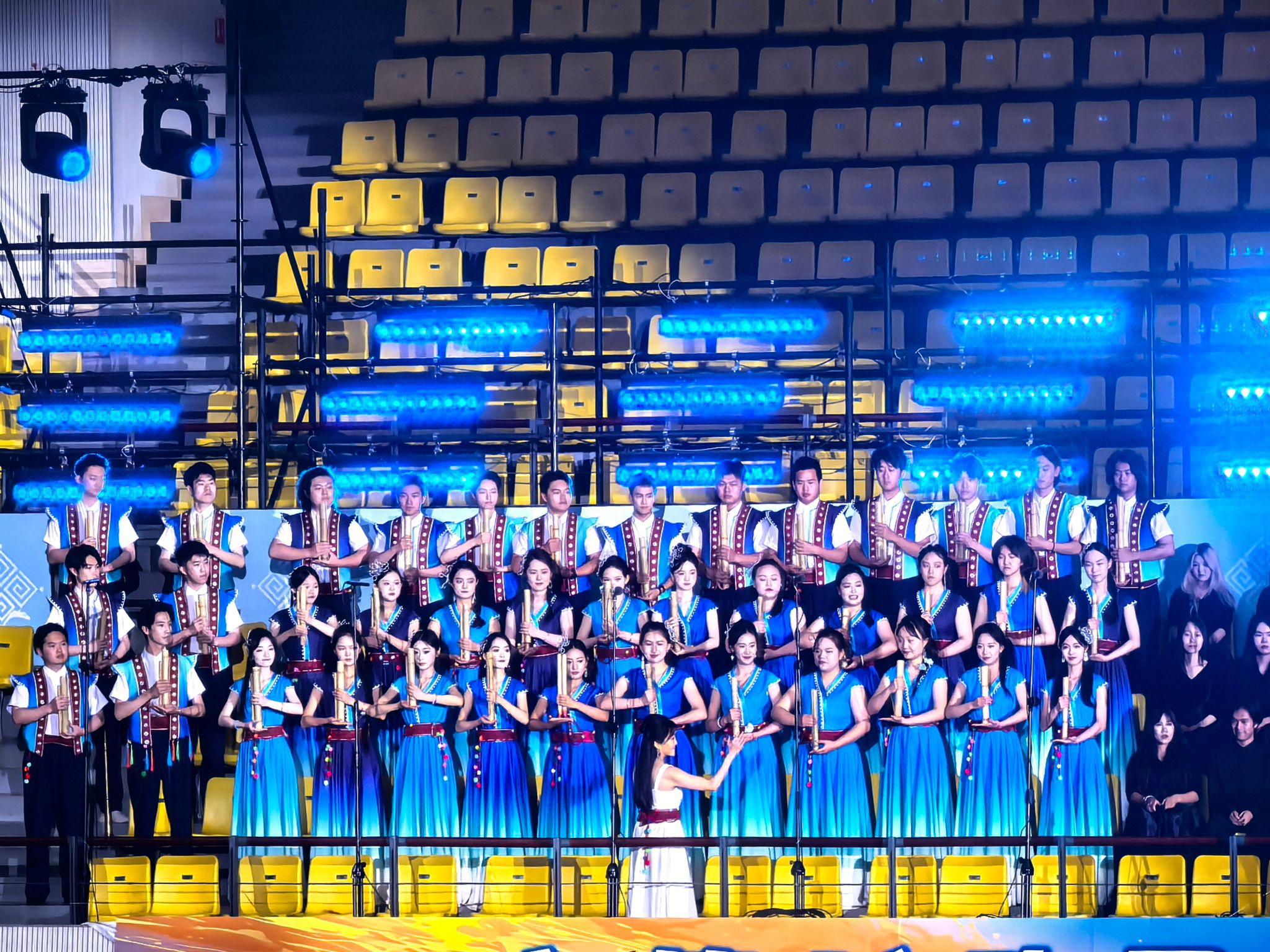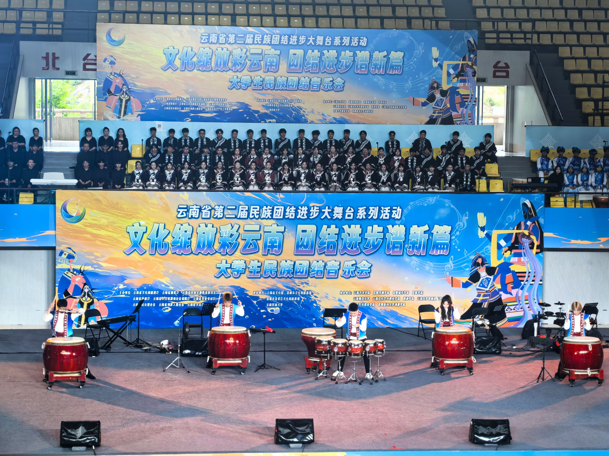 2025年6月15日,由云南省文化和旅游厅、省教育厅等多家单位联合主办的云南省第二届民族团结进步大舞台系列活动——“文化绽放彩云南 团结进步谱新篇”大学生民族团结音乐会在云南民族大学精彩上演,来自全省11所高校的300余名师生同台献艺。今年会官方网站音乐学院选送《滇鼓-乐之魂》《排角姑娘》《山寨猎歌》《怒放的生命》4个节目参与演出。党委委员、副院长郎启训出席音乐会,音乐学院师生代表到现场观看音乐会。