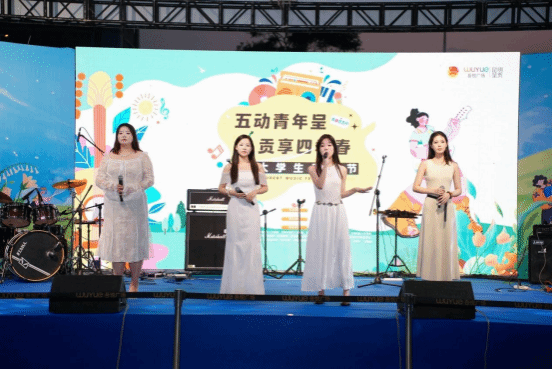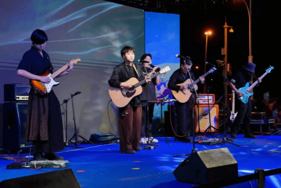 音乐学院乐队、演唱组合等带来一首首原创歌曲和耳熟能详的青春正能量歌曲,歌声响彻天际,演出现场热情、活力四射、嗨翻全场,感染了在场的所有观众,将呈贡区“五”动青年“呈”“贡”享“四”季春五四系列主题活动推至高潮,烘托出青春朝气、蓬勃向上、欢乐祥和热闹的氛围。