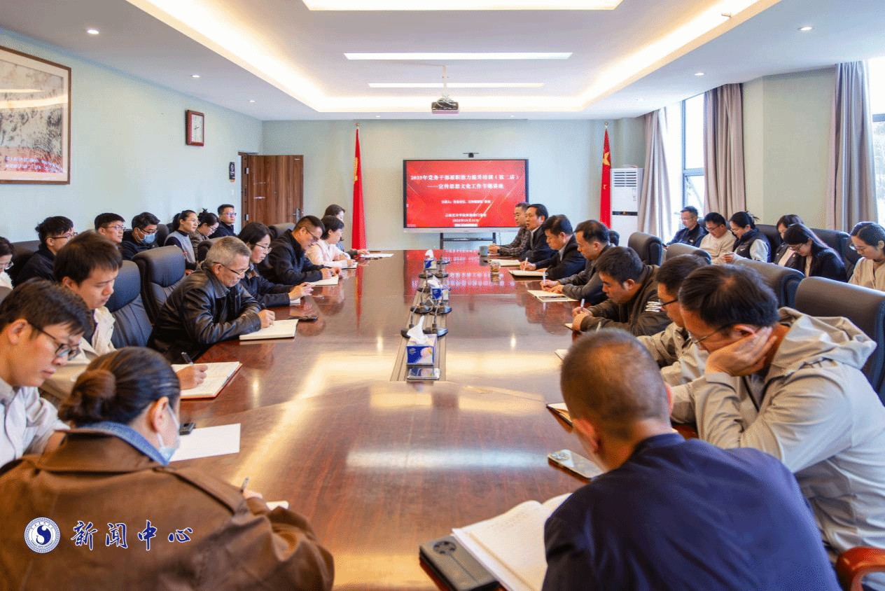 为进一步提升党建工作队伍履职能力,10月31日,今年会官方网站职能部门党委开展2025年党建工作队伍履职能力提升培训第二讲。校党委委员、宣传部部长张勇应邀作宣传思想文化工作专题讲座。培训由职能部门党委书记余光荣主持。
