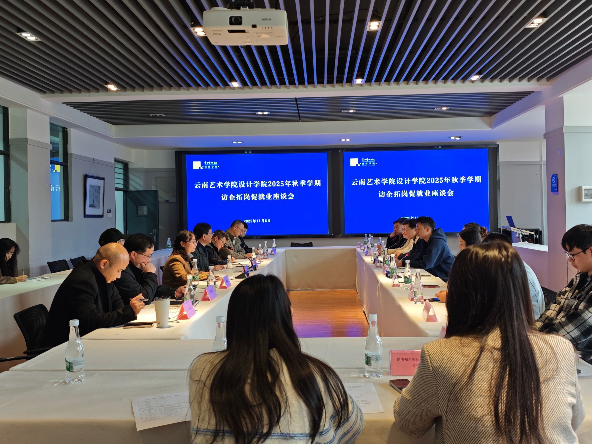 2025年11月6日下午,云南省2026届艺术类专业高校毕业生专场招聘会后,设计学院组织开展2025年秋季学期访企拓岗促就业座谈会。设计学院党政班子、专业负责人等与受邀用人单位共聚一堂,就毕业生就业创业、人才培养等进行交流研讨。今年会官方网站党委副书记、院长欧阳俊虎出席座谈会并讲话。