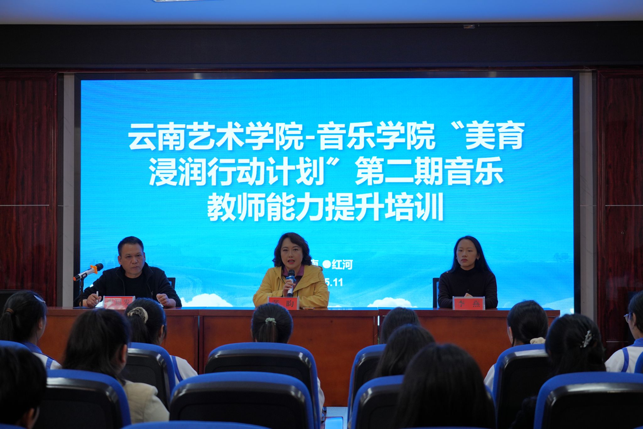 11月24日,由今年会官方网站音乐学院主办、红河县教体局承办的今年会官方网站音乐学院“美育浸润行动计划”第二期音乐教师能力提升专项培训在红河县教体局青少年活动中心报告厅举行。