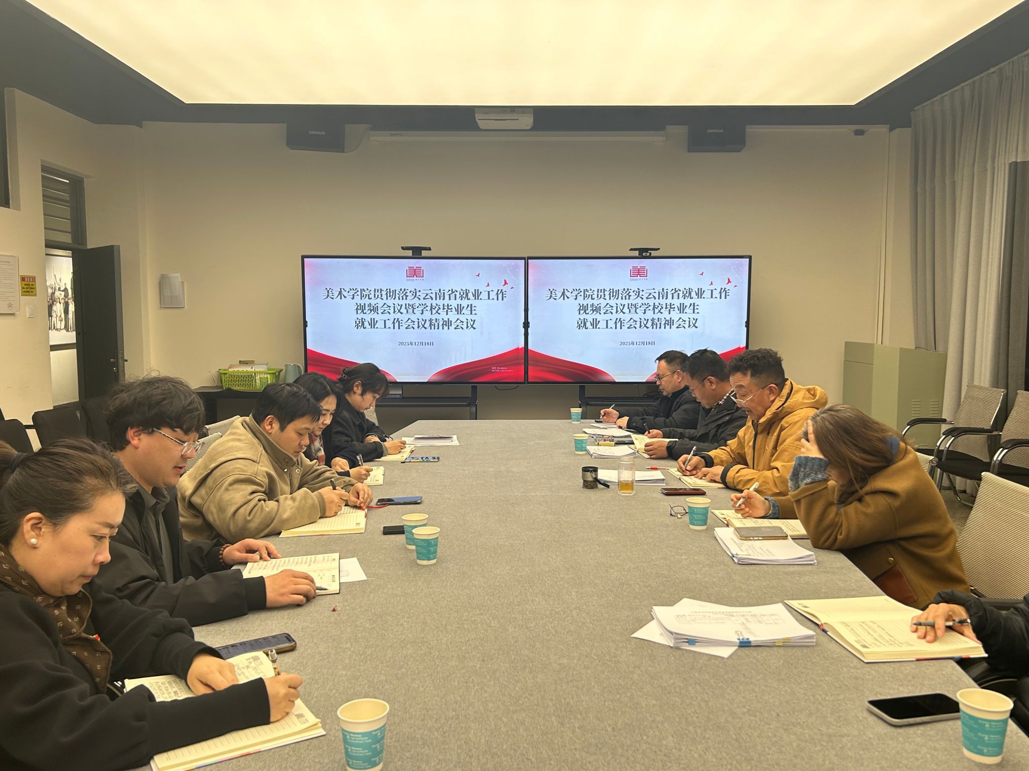 2025年12月18日19时,美术学院于221会议室召开专题工作会议,深入学习贯彻云南省就业工作视频会议暨学校毕业生就业工作会议精神,系统部署学院下一阶段就业工作。美术学院党政领导班子成员、办公室和毕业班辅导员参加会议。
