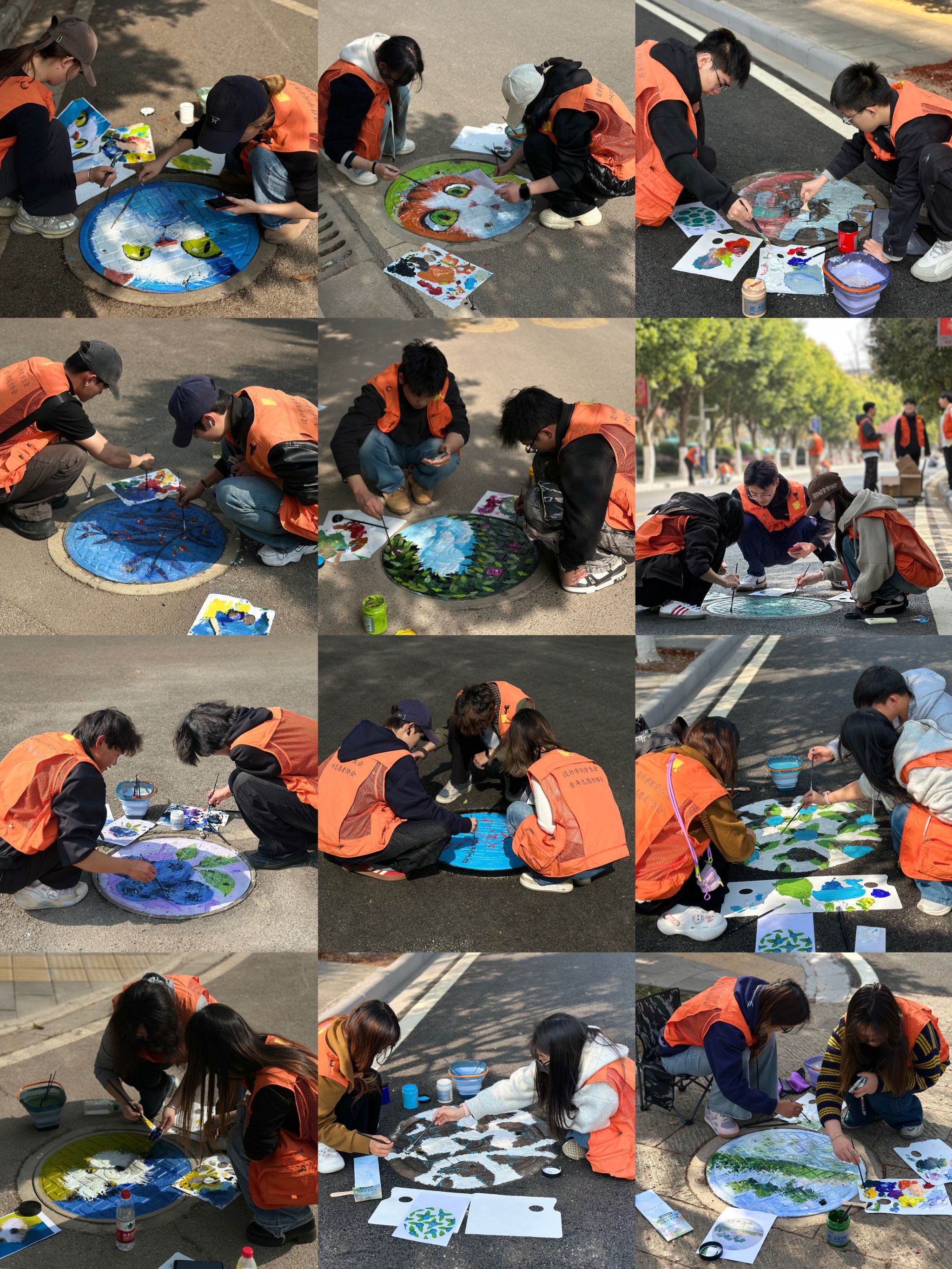 方寸井盖,尽显青春担当;点滴行动,传承雷锋精神。云艺设计学子以笔为翼,以爱为帆,褪去井盖原本的单调底色,化身“校园美容师”,将专业所长与青春创意融入方寸之间。笔下的每一种色彩都承载着温情,让不起眼的井盖成为校园里的“移动风景线”,让生硬的设施变得有温度、有情感。