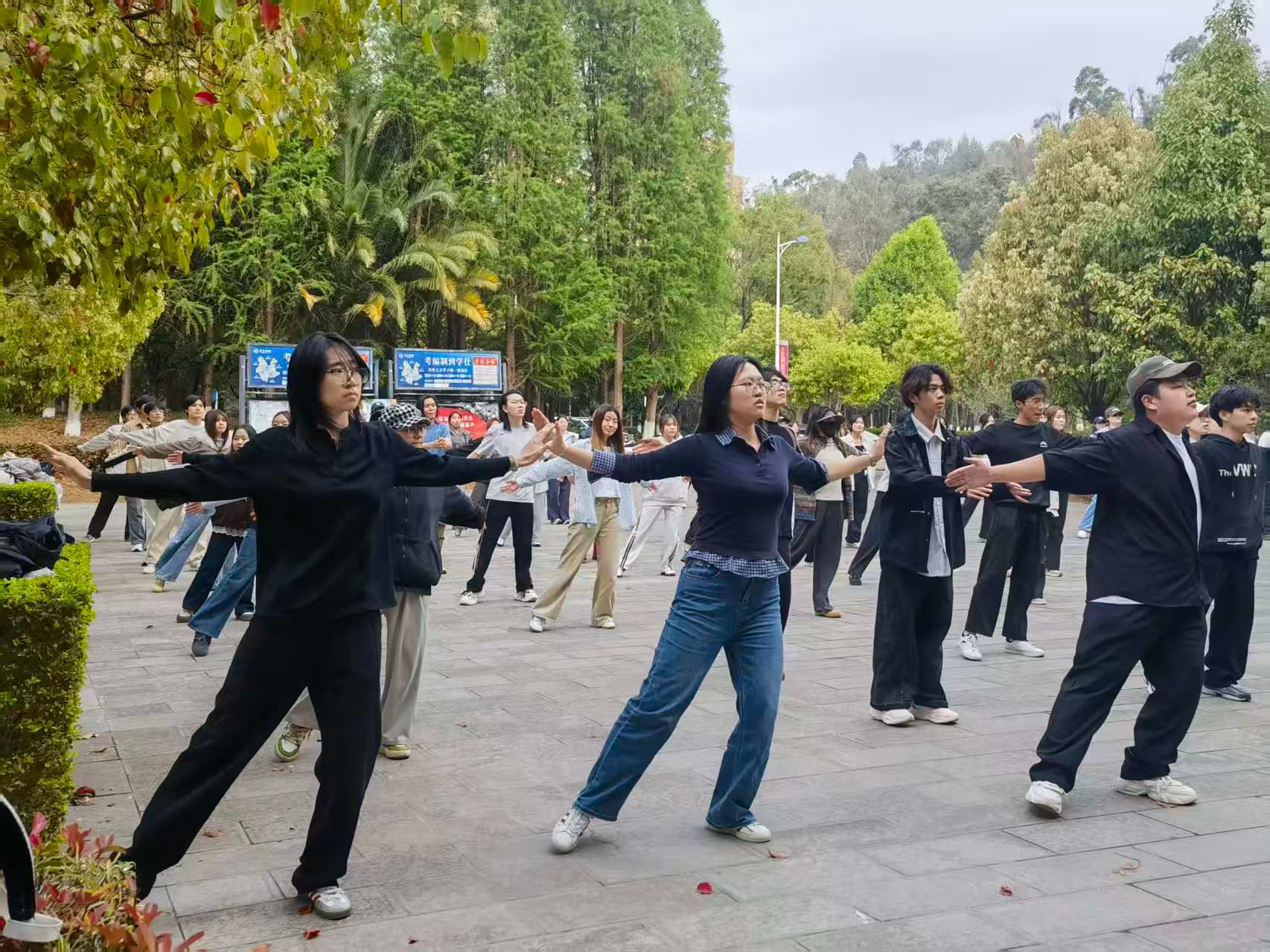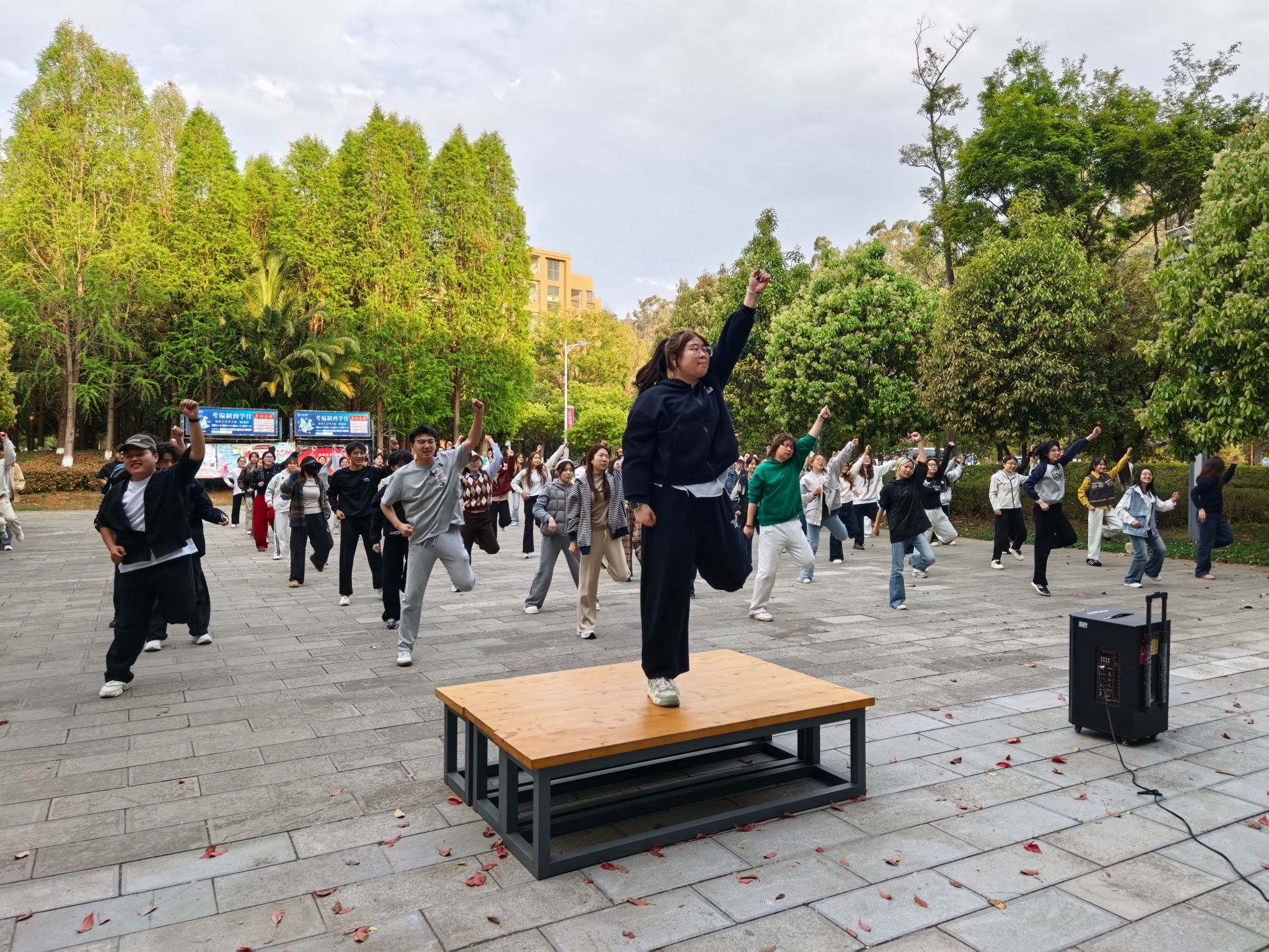 活动现场,学生们在领操老师的带领下有序完成练习,整套动作兼顾运动强度与易学程度,注重动作规范与集体配合,确保学生在安全前提下达到适度锻炼效果。相关辅导员全程在场,负责组织协调与安全保障工作,并记录学生参与情况,为后续活动持续开展做好基础管理。