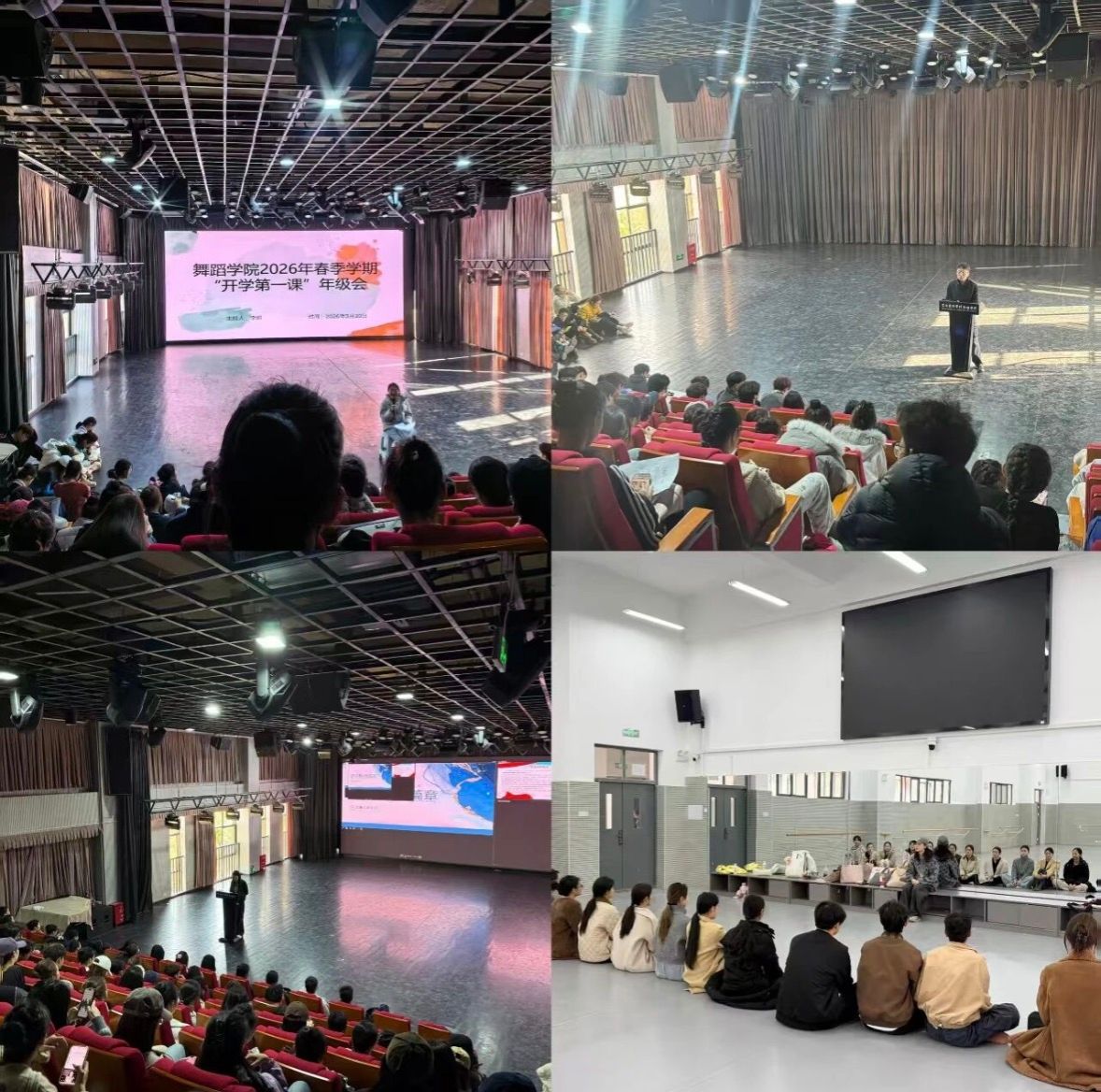 按照学校关于开展2026年春季学期“开学第一课”的相关要求,为切实抓好新学期学生思想政治教育与管理服务工作,抓实学风建设,筑牢安全防线,舞蹈学院于近期在院级、年级、班级分层开展“开学第一课”教育活动。