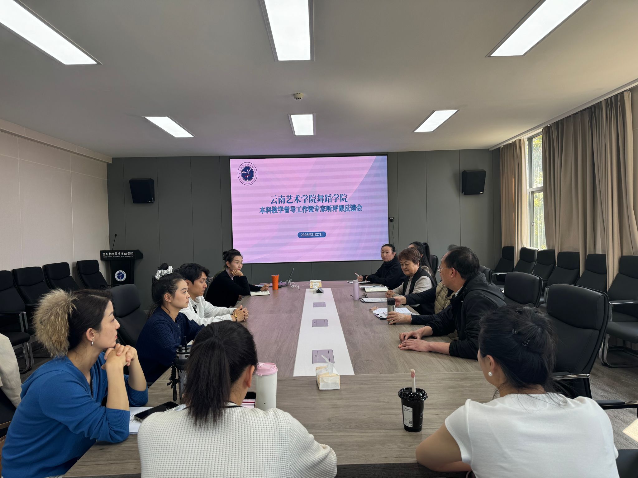 为进一步提升本科教学质量,加强青年教师队伍建设,舞蹈学院于2026年3月27日组织召开本科教学督导工作暨专家听评课反馈会。在对三个本科专业核心课程听课后,杨军、岳亚明两位专家在会上对青年教师的课堂教学作专题反馈,并为舞蹈学院本科教学的未来发展建言。舞蹈学院党委书记朱超、各系主任、教研室组长、青年教师代表及教学管理科工作人员参加会议。