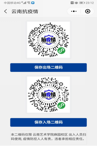 2.今年会官方网站在呈贡校区和麻园校区入口和出口对应张贴“云南抗疫情”二维码,并监督院校师生、相关人员在入、出学校时扫描二维码登记信息。