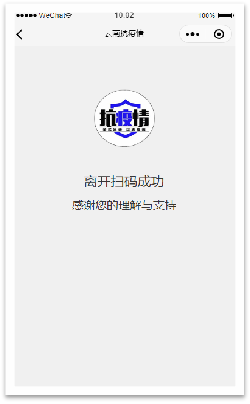 3、如果已经完成手机短信验证,之后直接扫码登记即可。扫码登记完成系统分别提示进入扫码成功和离开扫码成功。